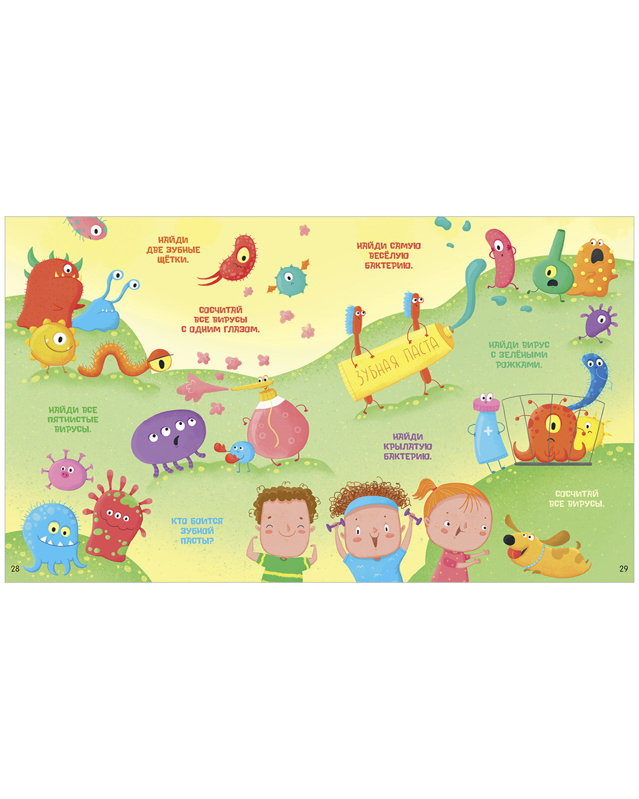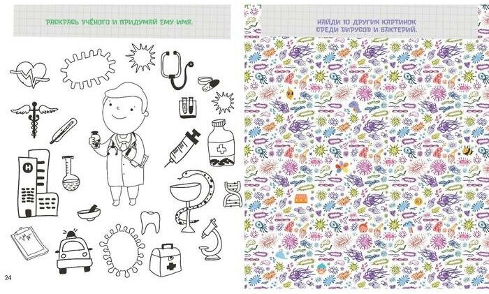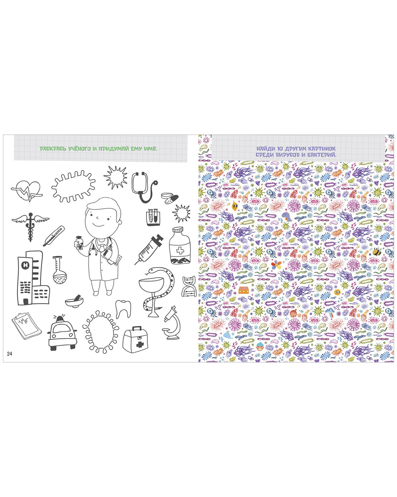 Добро пожаловать в мир вирусов и бактерий! Хватайте скорее цветные карандаши, фломастеры и вступайте в борьбу с вредными микробами. Лабиринты, раскраски, игры на поиск отличий и задания на логику - с этой книжкой вы точно не заскучаете!