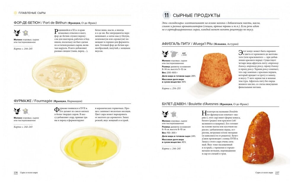 Книга разочаровала невнятными иллюстрациями. Художник многократно схалтурил, с помощью фотошопа повернёт зеркально картинку, сделает чуть ярче- и готова новая иллюстрация другого вида сыра. К тому же по этим рисункам сложно представить, как выглядит тот или иной вид сыра на самом деле. Если не можешь, или тебе лень- не берись вовсе за рисунок. Честнее и информативнее сделать четкое фото в хорошем разрешении. Разочарована. К содержащейся в книге справочной информации претензий нет, читать интересно. Но иллюстрации безнадежно портят всё. Не рекомендую данную книгу.