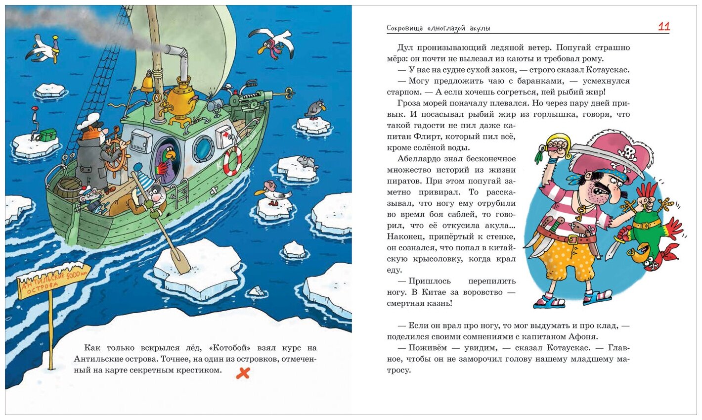 Не смотря на то, что книгу рекомендуют для школьников мой ребёнок в 5 лет схватил её и не отпускал пока не прочитали. Книги необходимо читать по порядку, так как появляются новые герои. Очень увлекательные динамичные приключения котов моряков. Рисунки дяди коли воронова просто идеально подошли к книге. Есть словечки-прилипалы, которые ребёнок постяонгл использует в речи