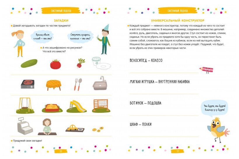 Анастасия Гончарова - автор творческих проектов и развивающих пособий на основе ТРИЗ-педагогики (ТРИЗ - теория решения изобретательских задач). Это интереснейшая методика, направленная на развитие мышления. У вас дома растет неутомимый маленький исследователь? Или, наоборот, ваш ребенок не проявляет интереса к обучению? В любом случае эта увлекательная книга не даст ему скучать! Вместе с героями - Ниной, Андреем и их верным другом попугаем Кешей - вашего ребенка ждут веселые приключения! - Найти решение исследовательской задачи - Поиграть в данетки - фантазию каракулями - все бродилки и находилки -Совершить логическое путешествие во времени Эта книжка по-настоящему волшебная! Занимайтесь по ней регулярно, и ваш ребенок легко и незаметно научится нестандартно мыслить, разовьет логическое и критическое мышление, узнает и запомнит много интересного обо всем на свете!