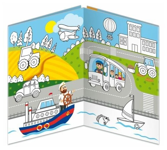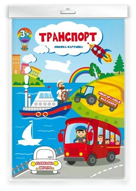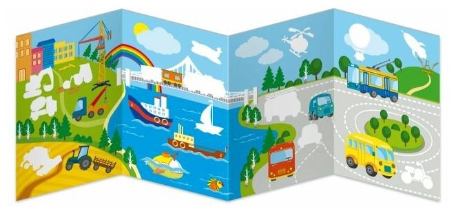 Увлекательная "Книжка-картинка" познакомит ребёнка с разными видами транспорта - наземным, воздушным, подводным, железнодорожным, строительным. Работа с наклейками тренирует мелкую моторику рук и координацию движений, развивает мышление и творческое воображение малыша. Задача ребёнка - правильно подобрать соответствующие элементы и аккуратно зафиксировать наклейку в нужном месте. Не беда, если не получилось сразу наклеить правильно по контуру. С многоразовыми наклейками это можно делать сколько угодно! А теперь, когда все наклейки на своих местах, можно раскрасить большую раскраску.