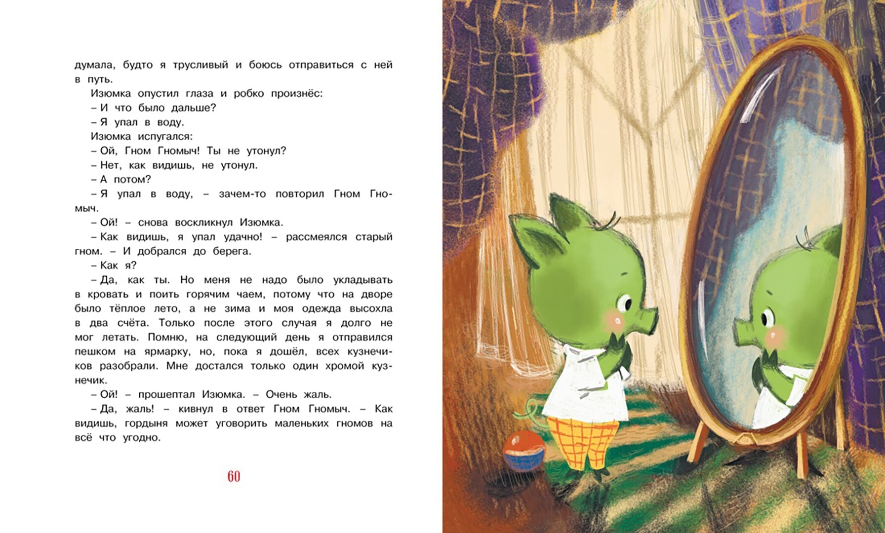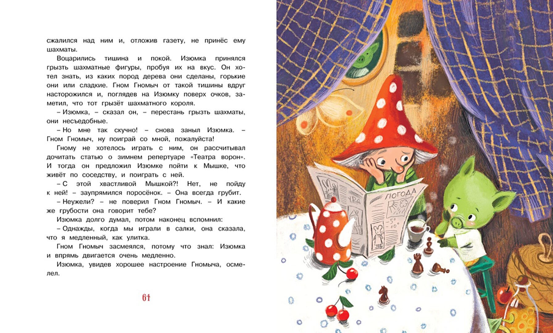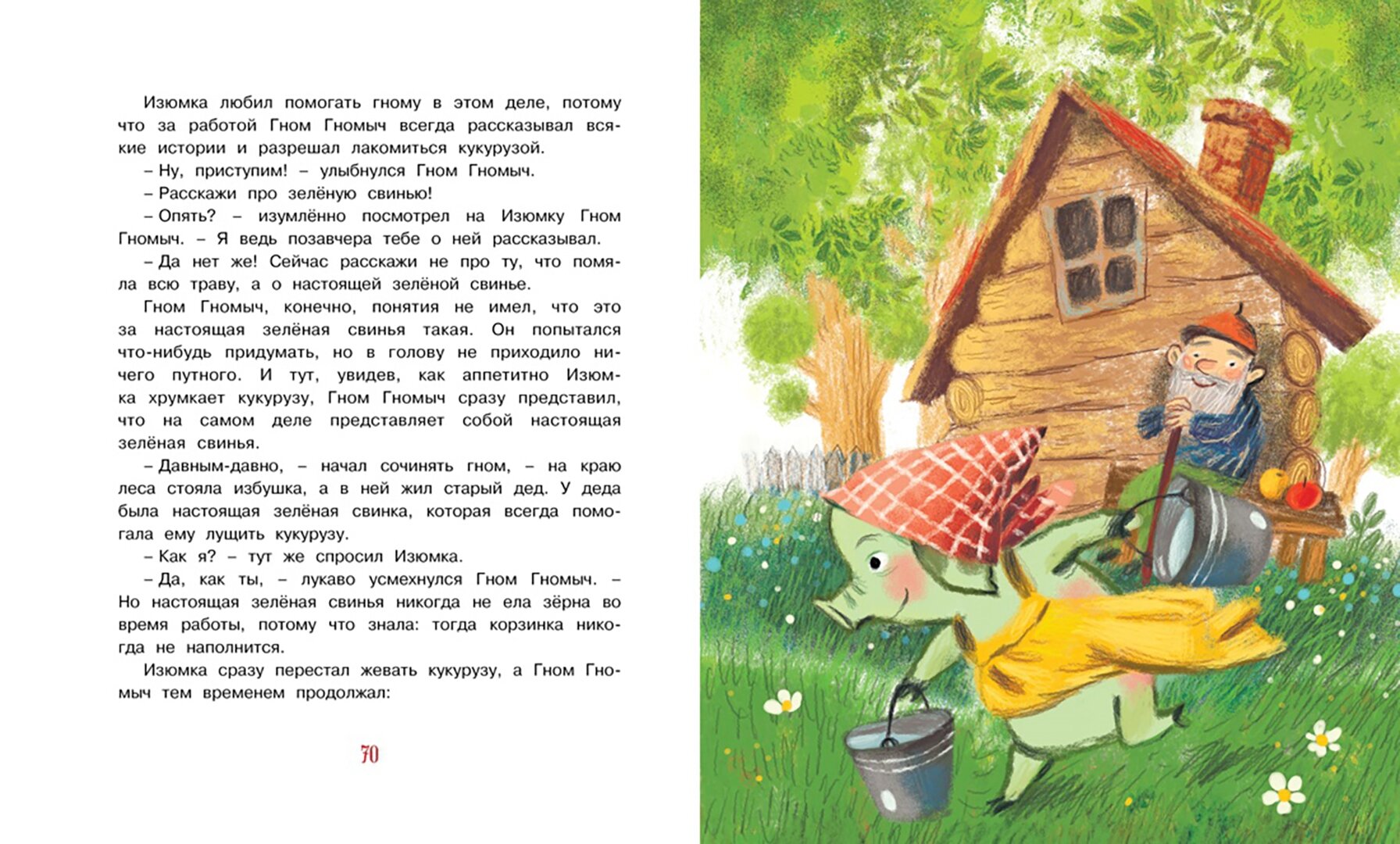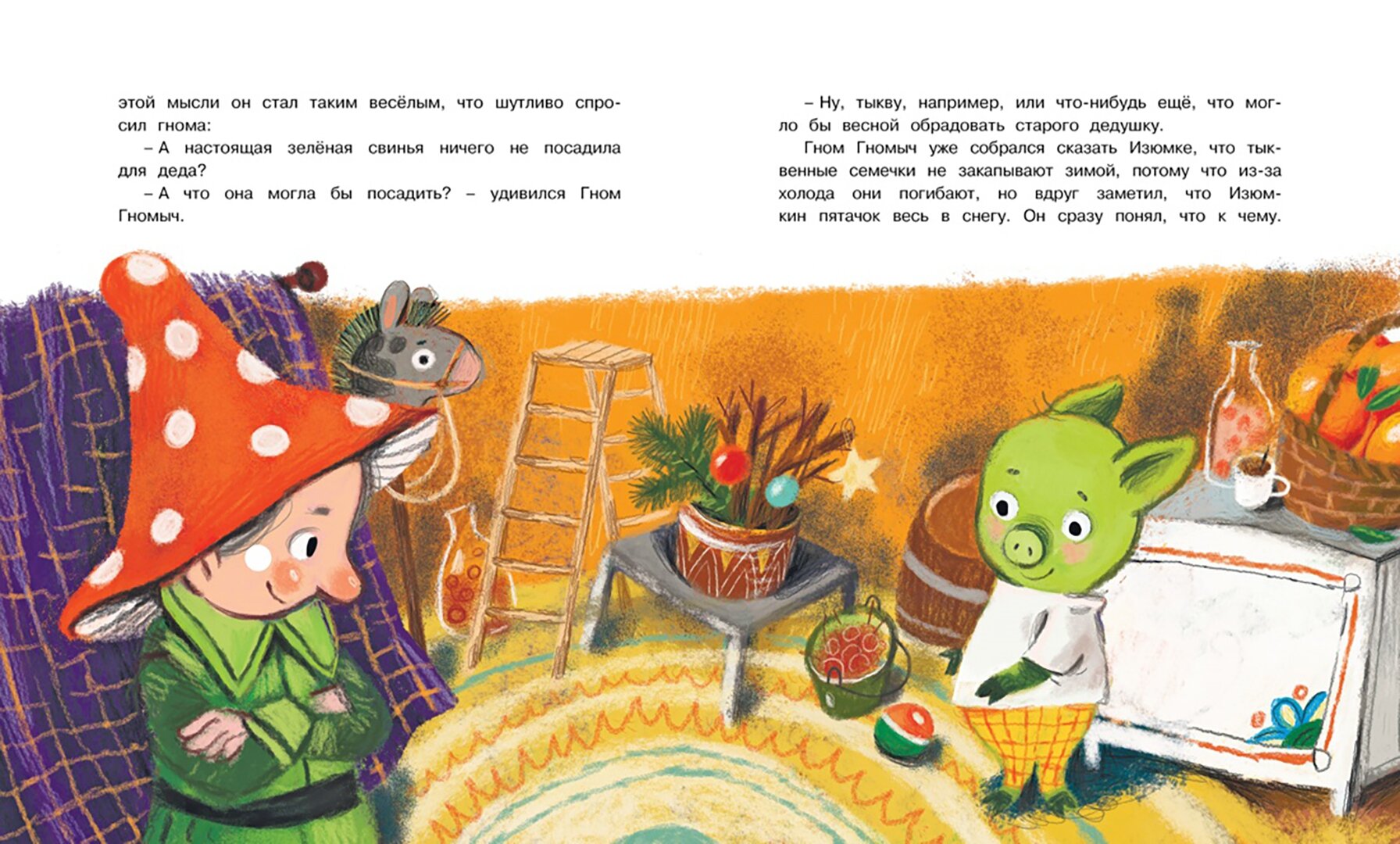 Случайно в магазине увидела забавную серию книг Агнеш Балинт про гнома и Изюмку. Заинтриговала обложка книги, захотелось знакомства с новыми персонажами, и выбор оказался удачным. Необычно показался зелёный персонаж, оказавшийся поросёнком.