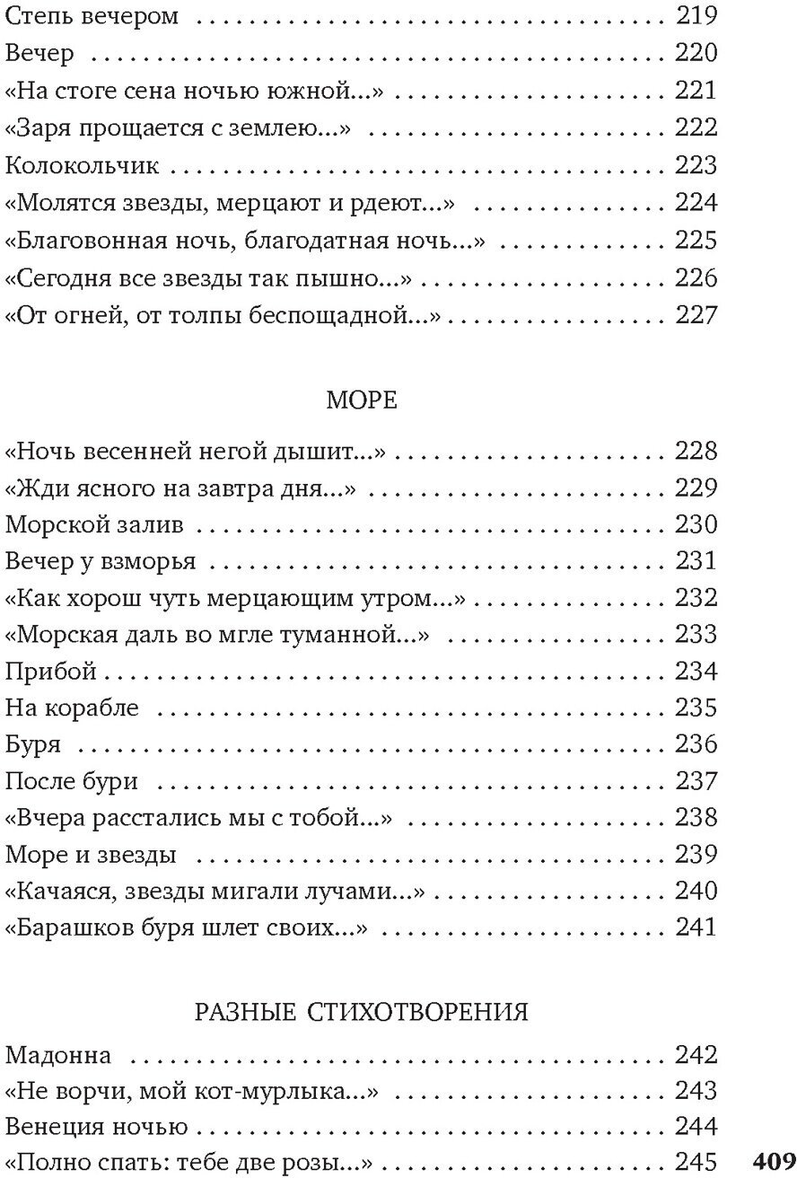 Ничего лишнего, только стихотворения всем известного автора, никаких предисловий и прочего. Чудесный сборник, прекрасное оформление, брошюру с изображением Фета можно убрать/снять. Однозначно советую к приобретению и прочтению, особенно если знакомы с творчеством автора довольно поверхностно, благодаря только школьной программе и т.д.