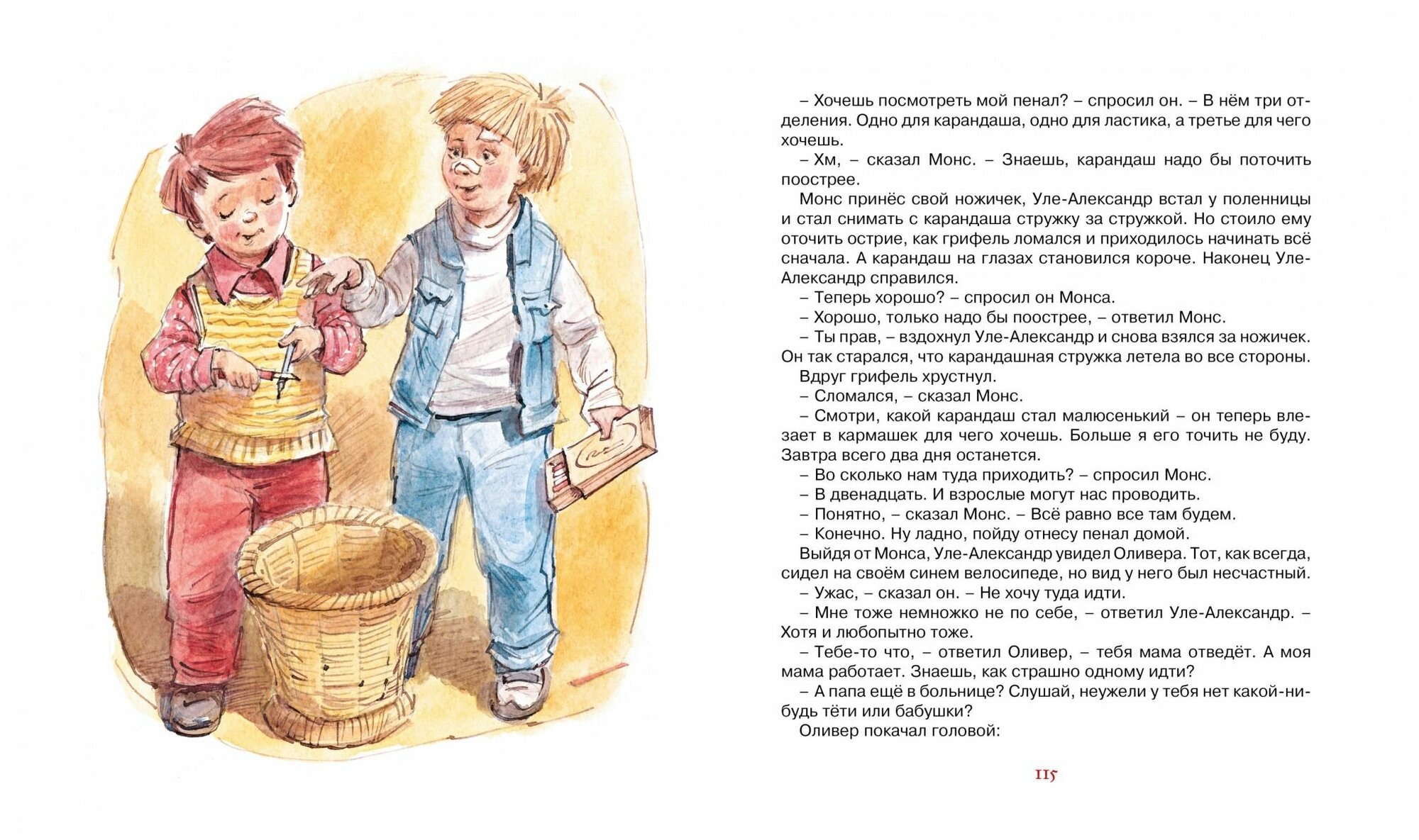 Вы уже знакомы с Уле-Александром. В этой книге вы прочитаете о его новых приключениях и узнаете, почему он попал в больницу, как был полицейским, что такое «летняя стрижка», какой сюрприз приготовил папа для Уле-Александра, как у него появился новый друг, с какими неприятностями ему пришлось столкнуться в школе, а самое главное, вы сможете отправиться вместе с ним в полёт! В книге «УЛЕ-АЛЕКСАНДР ИДЁТ В ШКОЛУ» вы прочитаете много новых историй о том, как он вместе со своими друзьями пошёл в первый класс, и познакомитесь с его младшей сестрёнкой. Ранее эта книга выходила под названием «Первый полёт Уле-Александра».