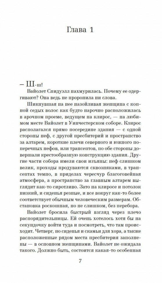 1932 год. После того как Великая война забрала и жениха, и любимого брата, Вайолет стала одной из «лишних женщин», обреченных на одиночество. И все же она не может примириться с тем, что ей не остается ничего другого, кроме забот о вечно недовольной матери. С трудом скопив небольшую сумму, Вайолет переезжает из родного дома в Уинчестер и начинает новую, самостоятельную жизнь. Помимо скудного питания, пансионата, продуваемого сквозняками, и косых взглядов, брошенных на безымянный палец без кольца, в этой жизни и в этом городе есть нечто иное: величественный собор, дружеское участие и волшебное ремесло вышивальщицы, которое дарит утешение и позволяет дарить его другим. Как прекрасный гобелен начинается с одного-единственного маленького стежка, так и жизнь Вайолет расцветает красками благодаря решительному шагу навстречу неизвестности.