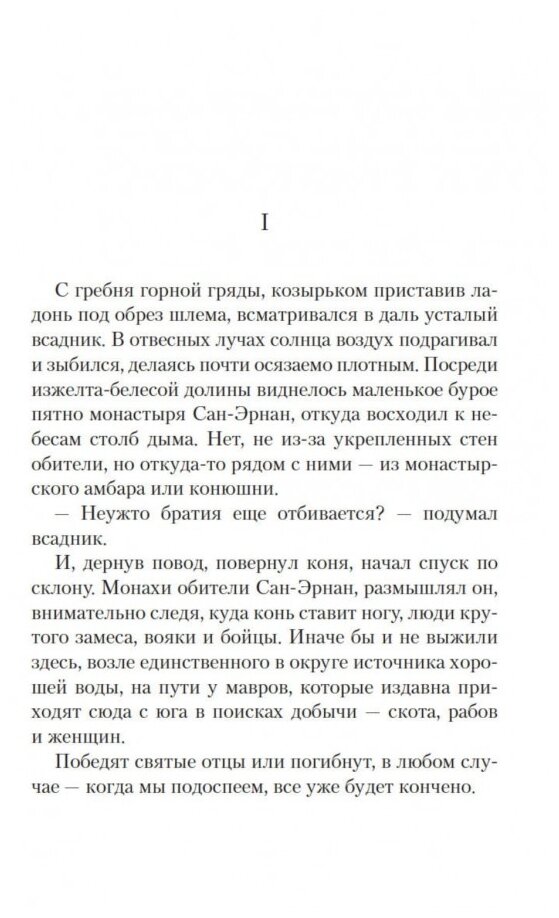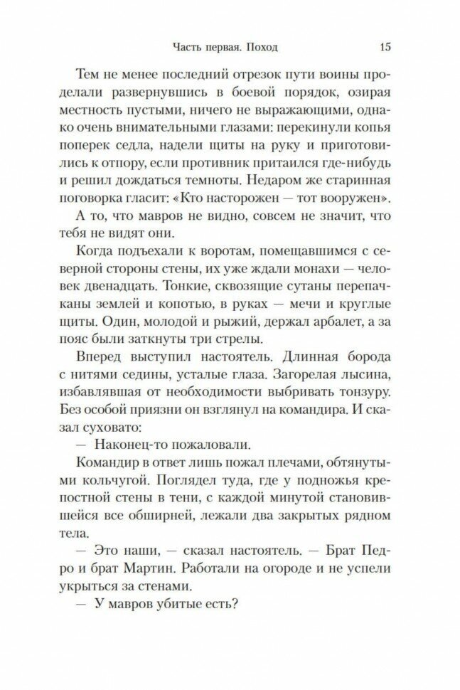 «Реверте снова изобрел новый жанр, на этот раз — средневекового вестерна», писала газета El Mundo, а в ABC Cultural выразились еще категоричнее: «Из истории Эль-Сида Реверте сделал шедевр». Да, главный персонаж этой книги — кастильский дворянин Родриго Диас де Вивар, более известный как Эль-Сид Кампеадор («Победитель»), герой средневековой «Песни о моем Сиде» и трагедии «Сид» великого французского драматурга Пьера Корнеля, а также многочисленных народных преданий и романсов. С горсткой верных людей изгнанный из родной Кастилии, бывший главнокомандующий поступает на службу к эмиру Сарагосы, воюет с Рамоном Братоубийцей, графом Барселонским, и отражает вторжение жестоких альморавидов, неизменно отправляя кастильскому королю Альфонсо положенную вассальным долгом долю военной добычи и тоскуя по оставленной в Кастилии жене донье Химене. Еще при жизни Сид (от арабского «сиди» — «господин») приобрел легендарные черты и считался эталоном отважного рыцаря, воевавшего как с христианскими тиранами, так и с мавританскими…