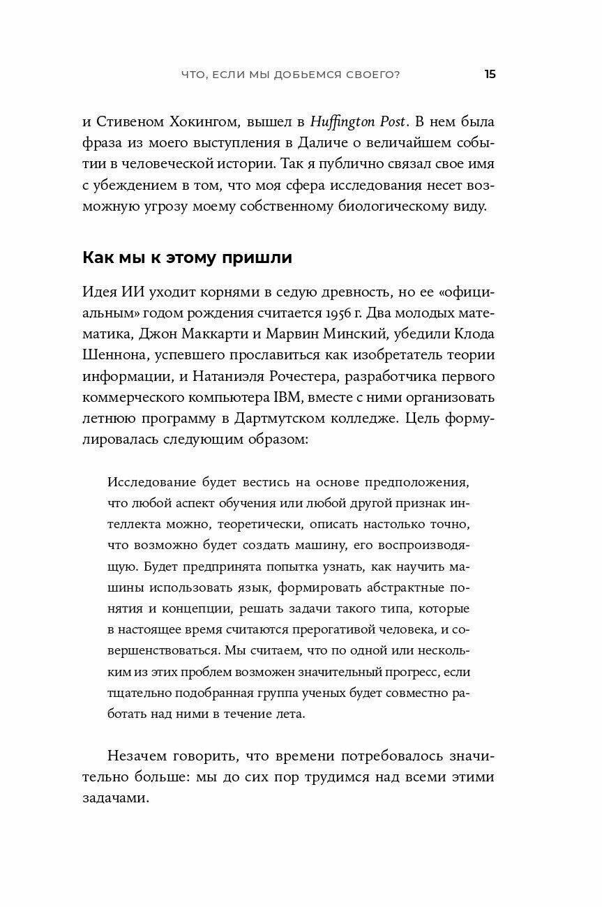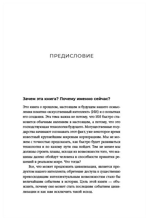 Все, что может предложить цивилизация, является продуктом нашего интеллекта; обретение доступа к существенно превосходящим интеллектуальным возможностям стало бы величайшим событием в истории. Цель этой книги — объяснить, почему оно может стать последним событием цивилизации и как нам исключить такой исход.
