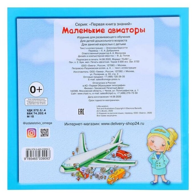 Познавательная книжка «Маленькие авиаторы», вышедшая в серии «Первая книга знаний» издательства «Омега», создана для развивающих занятий взрослых с детьми дошкольного возраста. В занимательной форме она расскажет вашему ребёнку много интересного о назначении и устройстве пассажирского авиационного транспорта.