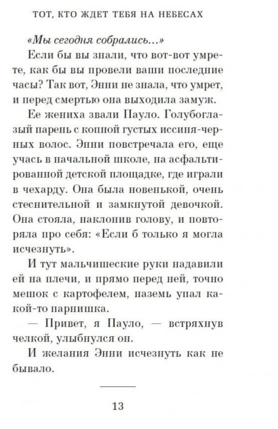 Третья книга этого автора зашла просто на «Ура!». Эту книгу можно назвать продолжением книги «Пятеро, что ждут тебя на небесах». Главная героиня - девочка которую спас Эдди. В книге показывают как сложилась ее дальнейшая жизнь.