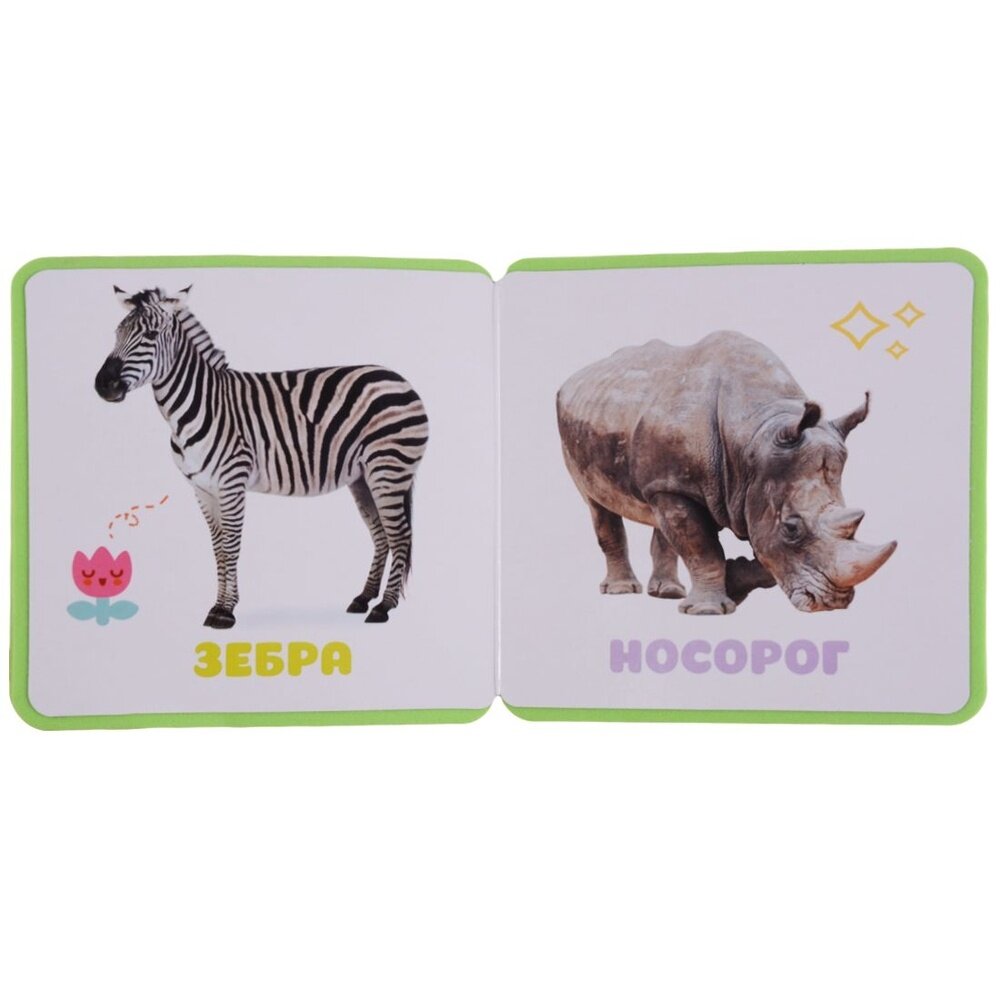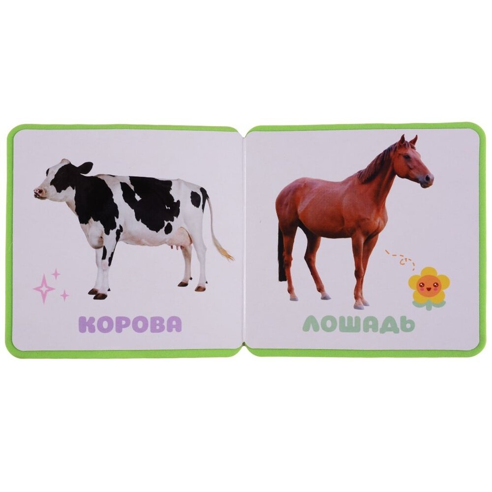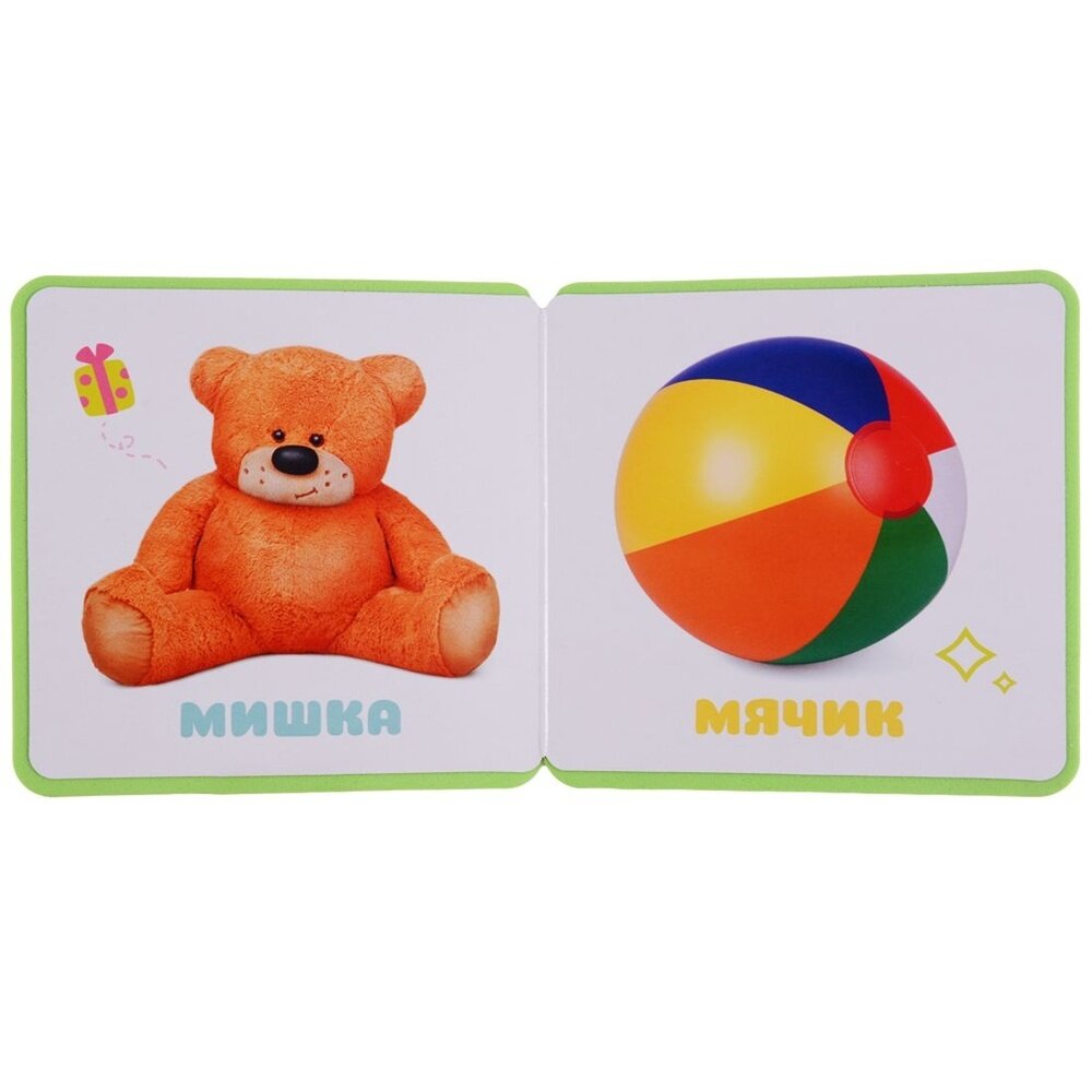 Внутри малыш найдет 20 красочных фотографий фруктов, игрушек, животных, транспорта и т. д. Рассматривая их, ребенок расширит представления об окружающем мире и пополнит свой словарный запас.