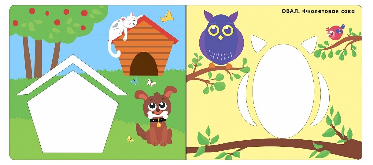 В книге вы найдете картинки-трафареты для обведения разной степени сложности. Знакомые и яркие образы (лягушка, сова, пароход, овечка и другие) будут понятны каждому малышу.