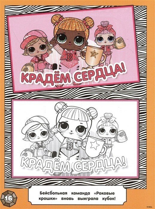 На каждой страничке вы найдёте готовые иллюстрации и их чёрно-белые копии для раскрашивания. Крошки L.O.L. Surprise! научат, как внимательно и правильно выбирать цвета, или, включив воображение, создавать свои новые уникальные рисунки.