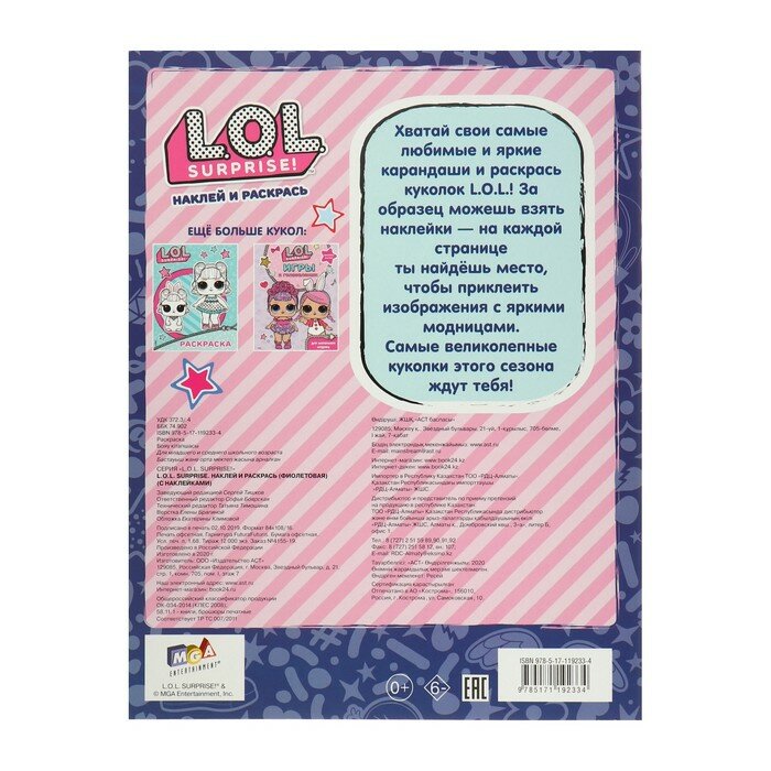 L.O.L. Surprise. Наклей и раскрась (фиолетовая) (с наклейками) (Боярская С. (отв. ред.)); ИЗДАТЕЛЬСТВО "АСТ", 2017
