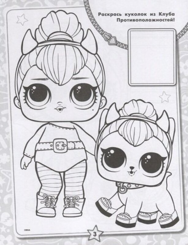 Хватай свои самые любимые и яркие карандаши и раскрась куколок L.O.L.! За образец можешь взять наклейки — на каждой странице ты найдёшь место, чтобы приклеить изображения с яркими модницами. Самые великолепные куколки этого сезона ждут тебя!
