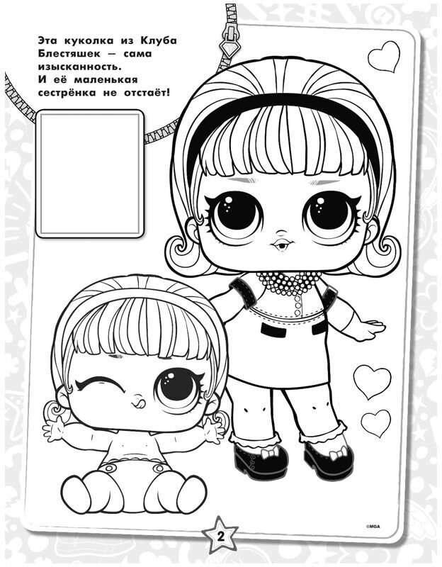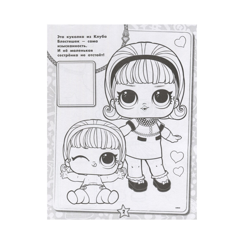 Хватай свои самые любимые и яркие карандаши и раскрась куколок L.O.L.! За образец можешь взять наклейки — на каждой странице ты найдёшь место, чтобы приклеить изображения с яркими модницами. Самые великолепные куколки этого сезона ждут тебя!
