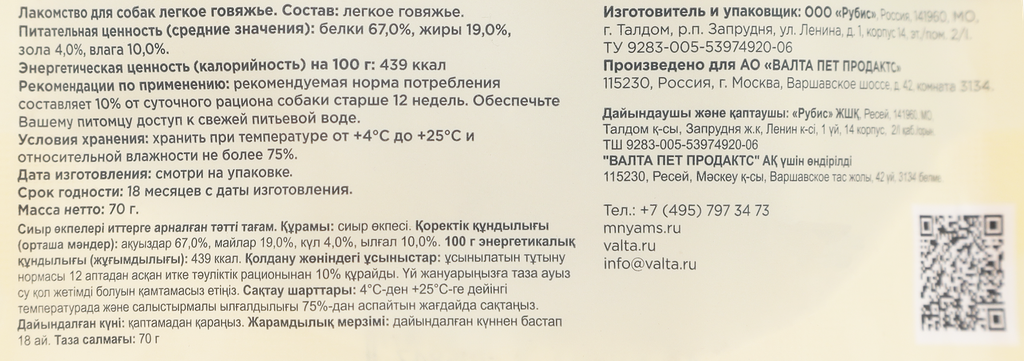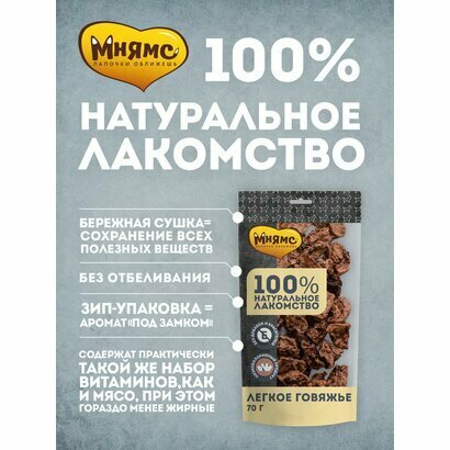 Сервис сравнения цен СкидкаГИД предлагает сравнить цены на товар «Лакомство для собак Мнямс легкое говяжье 70г»