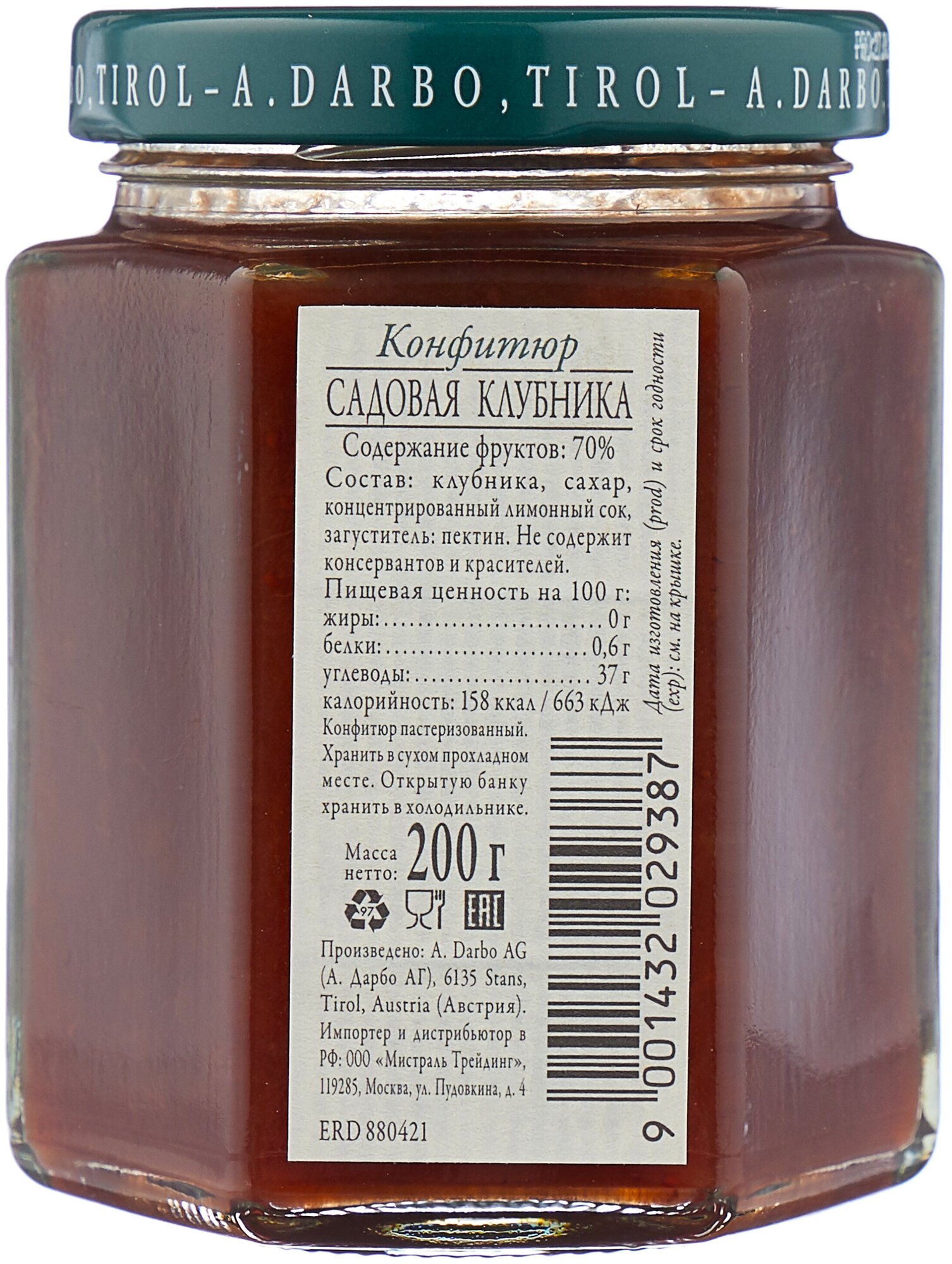 Конфитюр Darbo Садовая клубника 200г A. Darbo A.G.