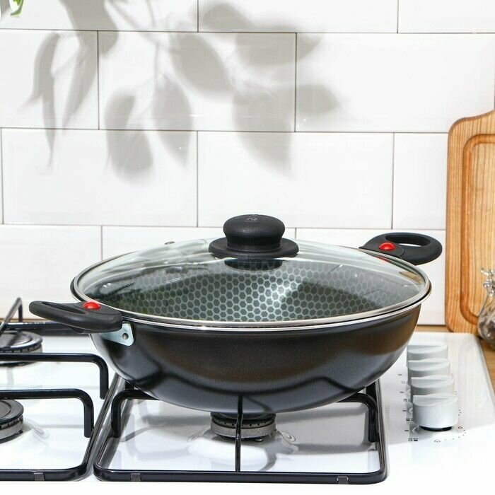 JARKO Казан Forever 35 л d=28 см две съёмные ручки стеклянная крышка цвет чёрный Hoff JBr1-828-21