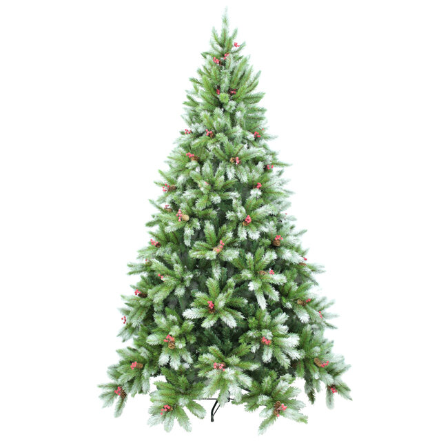 Нарядная ель АЙС тиффани с ярким декором и изысканно роскошным силуэтом просто восхитительна! Невероятно эффектная искусственная ель АЙС тиффани (ICE TIFFANY) со сказочно-пушистой кроной классического силуэта сразу же привлекает внимание своим ярким декором. Прежде всего, это пышные заснеженные лапы из лески, собранные в изящные розетки, на которых уютно расположились натуральные еловые шишки и ярко-красные заснеженные ягодки. Кончики хвоинок, выполненных из лески, завершают прозрачно-серебристые капельки, придающие особую нарядность облику ели, как бы подсвечивая крону изнутри. Эта ель прекрасна даже без новогоднего наряда, от неё веет свежестью зимнего утра! Веточки с хвоей из классического PVC, разместившиеся в глубине приствольного пространства, придают дополнительный визуальный объем и густоту кроне этой чудной ели. Устойчивую металлическую подставку легко можно декорировать стильной корзиной или специальной юбкой для основания елей. Характеристики: Высота - 2.2 м.Диаметр нижнего яруса - 146 см.Количество веточек - 1041.Хвоя - леска+PVC.Длина иголок - 4,5 см леска, 3 см - PVC.Цвет - зелёный.Декор - заснеженная хвоя, натуральные шишки, ярко-красные заснеженные ягоды.Тип крепления веток - шарнирный.Подставка - металл.Диаметр подставки - 50 см. Производство - BEATREES, ПК Пластиндустрия, Россия.