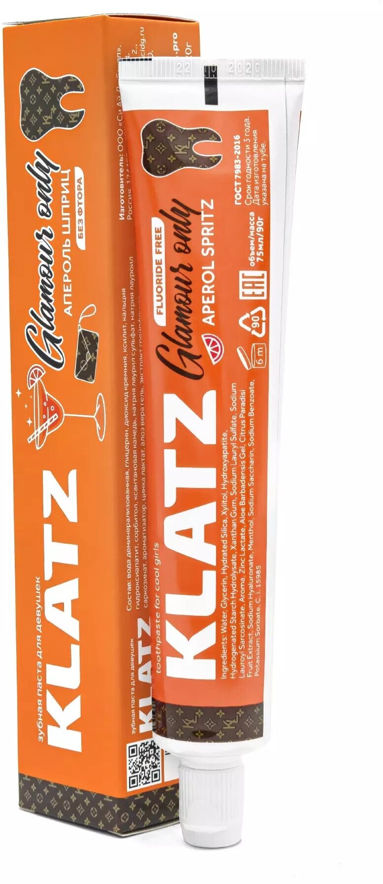 | Состав набора | Зубная паста Klatz GLAMOUR ONLY для девушек Апероль шприц без фтора 75 мл |