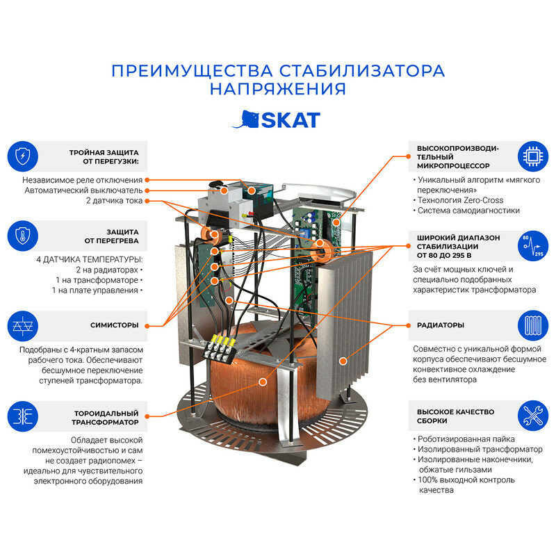 - Skat STL 10000. Симисторный стабилизатор напряжения от завода Бастион