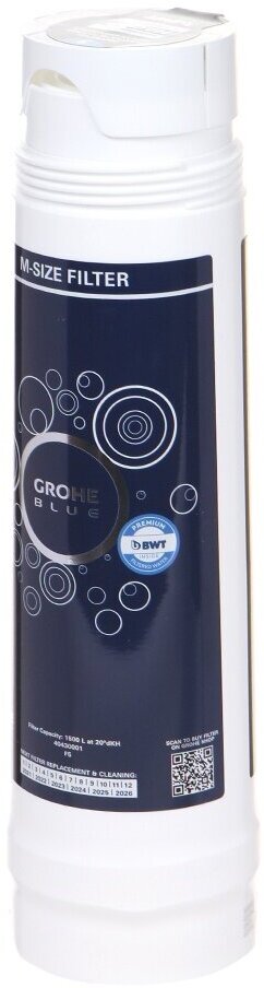 | Особенности, совместимость | Сменный фильтр для GROHE Blue и GROHE Red, производство BWT. Ресурс 1500 л при жесткости воды 20° dKH. 5-ступенчатая фильтрация. Снижает содержание веществ, ухудшающих вкус и запах воды:хлор и т.п. Уменьшает образование накипи и содержание тяжелых металлов. Совместим с GROHE Blue Home, GROHE Blue Professional, GROHE Blue Pure (только со счетчиком воды) и GROHE Red. |
