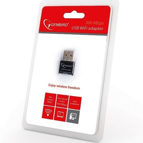 Отличный USB Wi-FiGembird адаптер который обеспечит беспроводное Wi-Fi соединение со скоростью до 300 Мбит/с. Адаптер подключается через порт USB 2.0. Модель легко и быстро устанавливается, удобен в использовании и обеспечивает надежное соединение и качественную передачу данных.Столь миниатюрный сетевой адаптер разработан для наибольшего удобства, один раз вставив адаптер в порт USB его можно там и оставить, находитесь ли вы дома или в дороге. Помимо этого, устройство отличается мощными режимами шифрования беспроводного соединения и простотой установки.