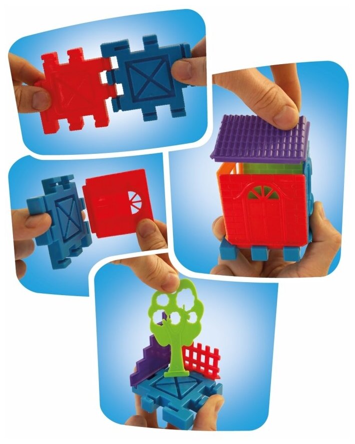 Детали конструктора сделаны специально для маленьких детских пальчиков и способствуют развитию мелкой моторики и пространственного мышления при сборке объемных конструкций.