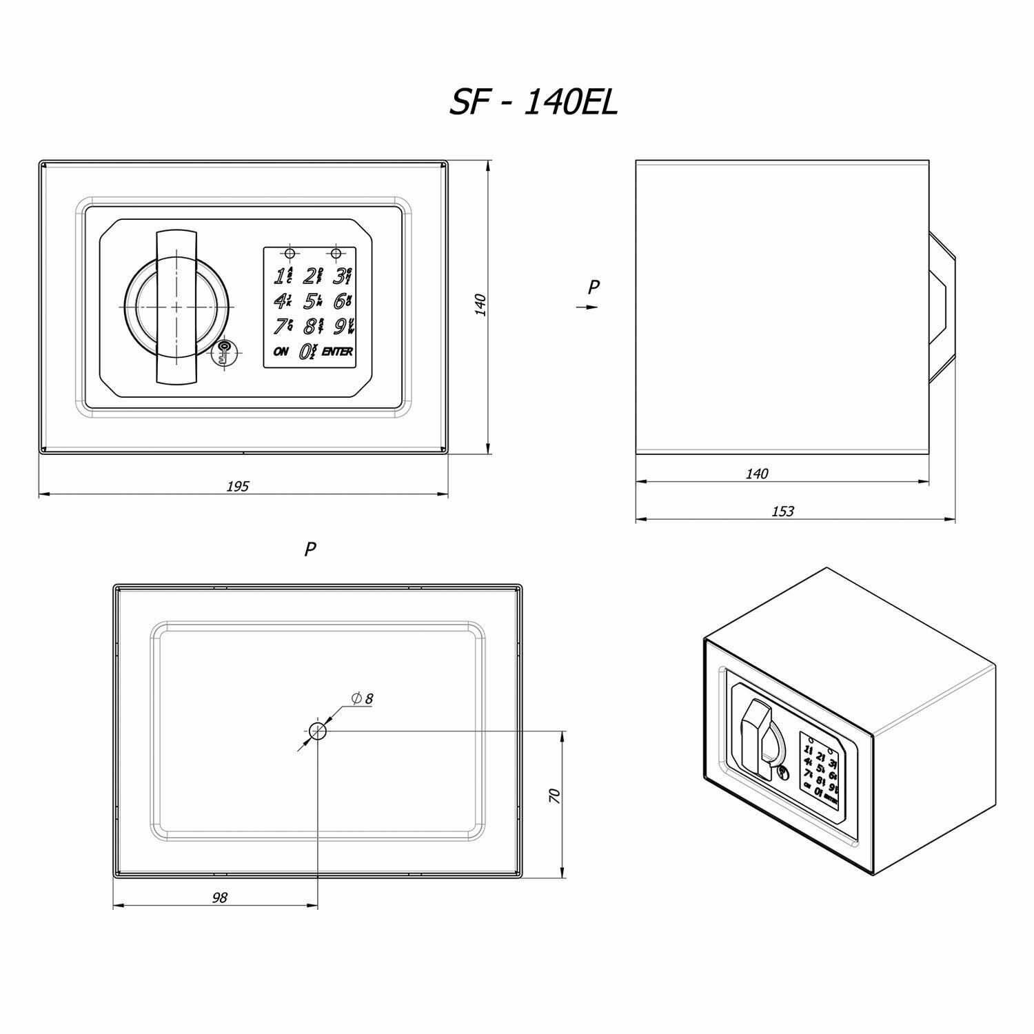 Модель: Сейф мебельный SF-140EL электронный замок 140х195х140 мм