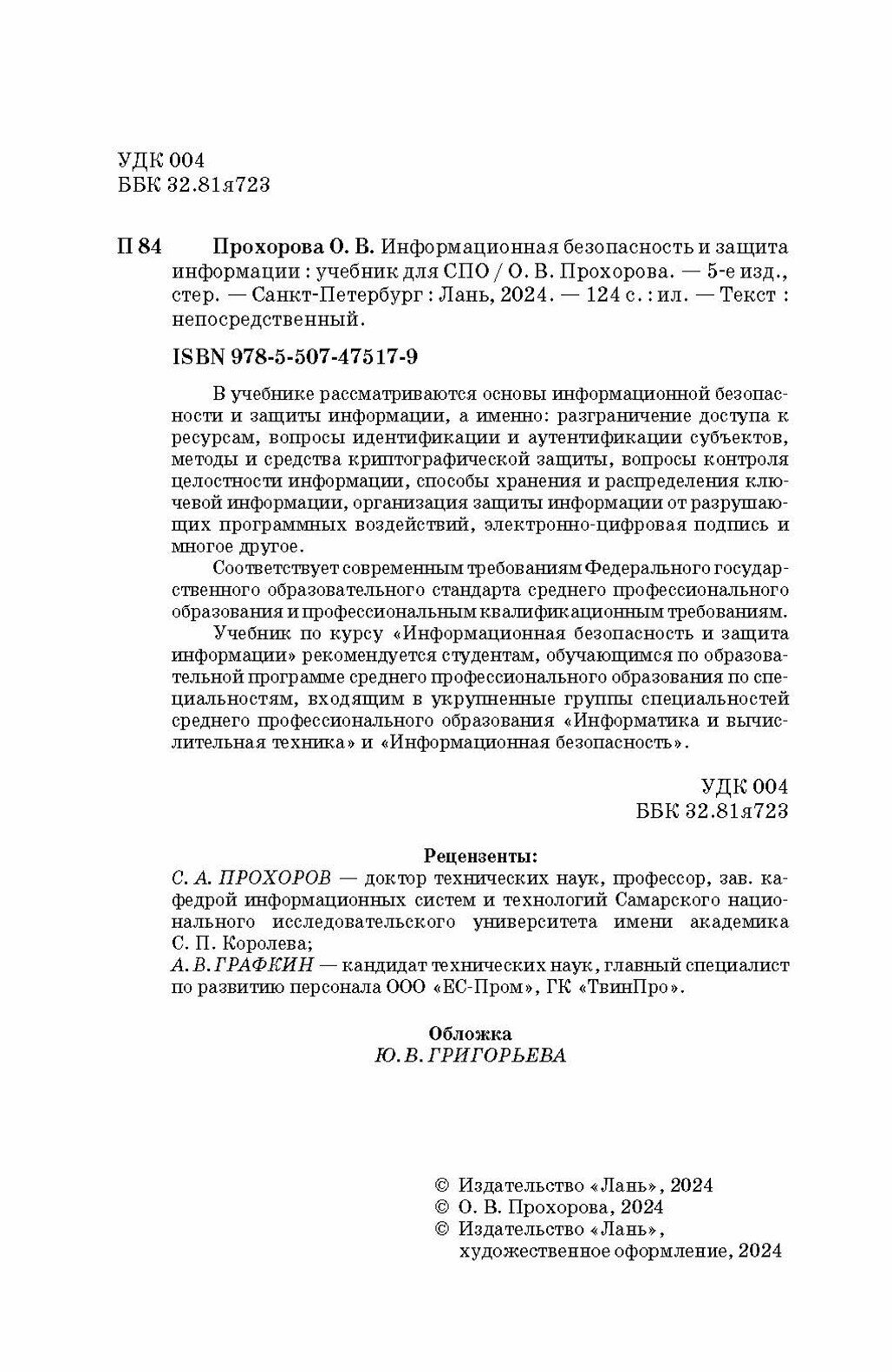 Информационная безопаснос.и защита информац.Уч.СПО (Прохорова Ольга Витольдовна); Лань, 2024