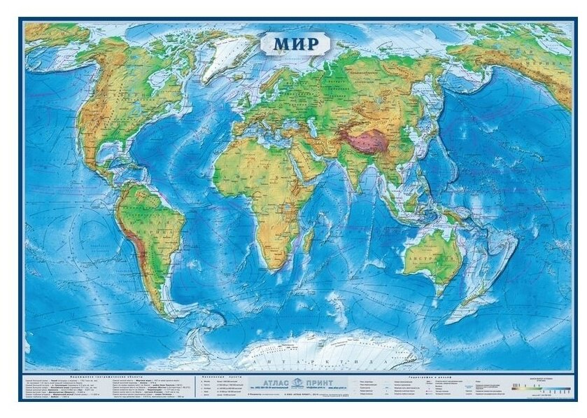 Карта "Мир" физический (КН 34); Атлас-Принт, 2023
