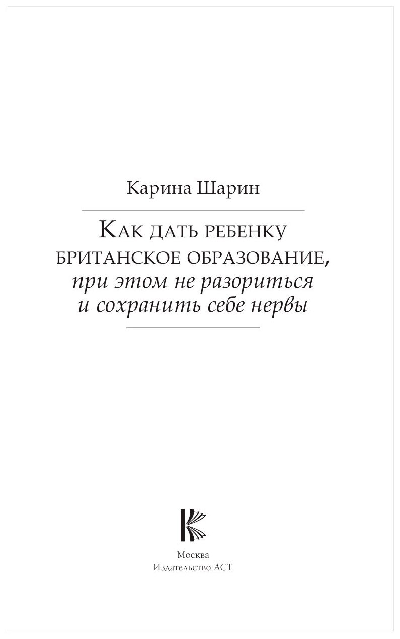 Как дать ребенку британское образование при этом не разориться и сохранить себе нервы (Шарин Карина Леонидовна); ООО "Издательство Астрель", 2020