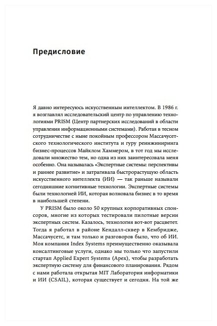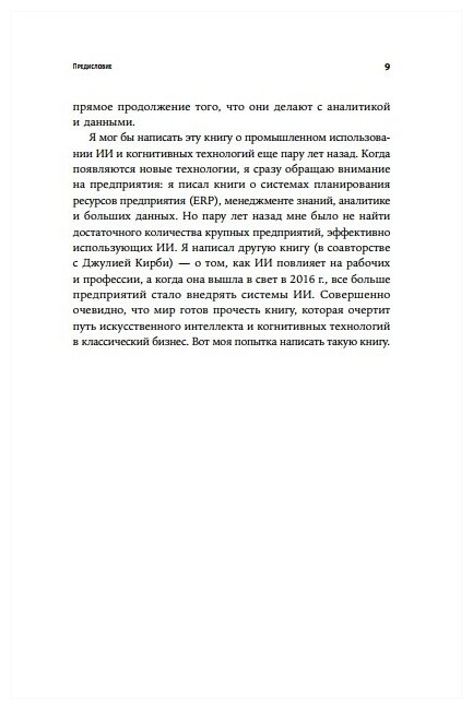 Эксперт в области аналитики и больших данных, преподаватель в Гарвардской школе бизнеса Томас Дэвенпорт в своей книге покажет, как можно эффективно интегрировать ИИ и когнитивные технологии в текущую бизнес-стратегию предприятия, чтобы сделать продукты привлекательнее, процессы совершеннее, а компанию успешнее.