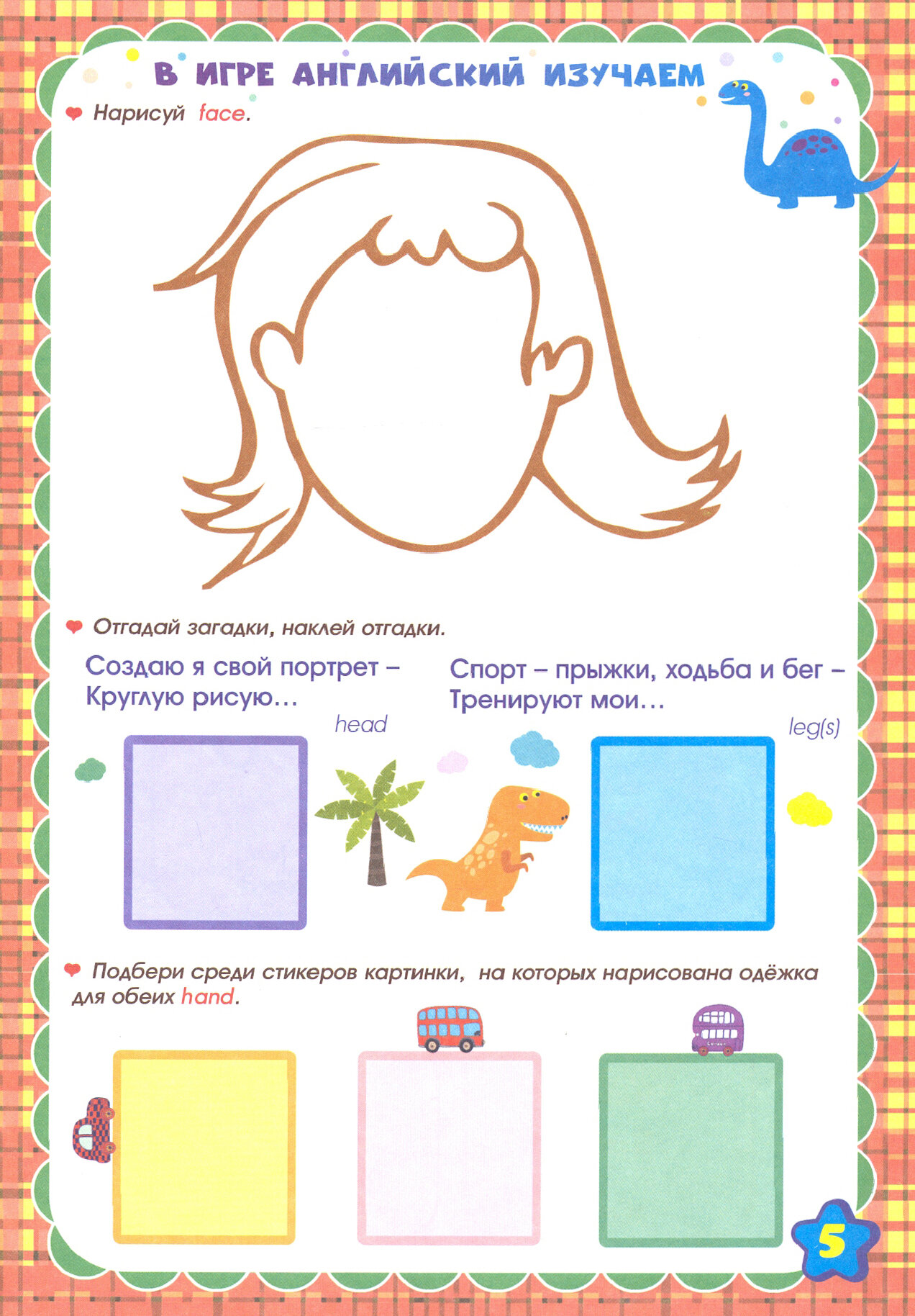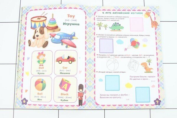 Книга по изучению английских слов - названий членов семьи, частей тела, объектов природы, фруктов и овощей, любимых детских игрушек, домашних и диких животных, предназначена для совместных занятий взрослых с детьми. Словарик в картинках, развивающие задания, стихи и загадки, а также любимые всеми малышами наклейки-стикеры помогут наиболее лёгкому усвоению английских слов, развитию познавательных способностей и мелкой моторики.