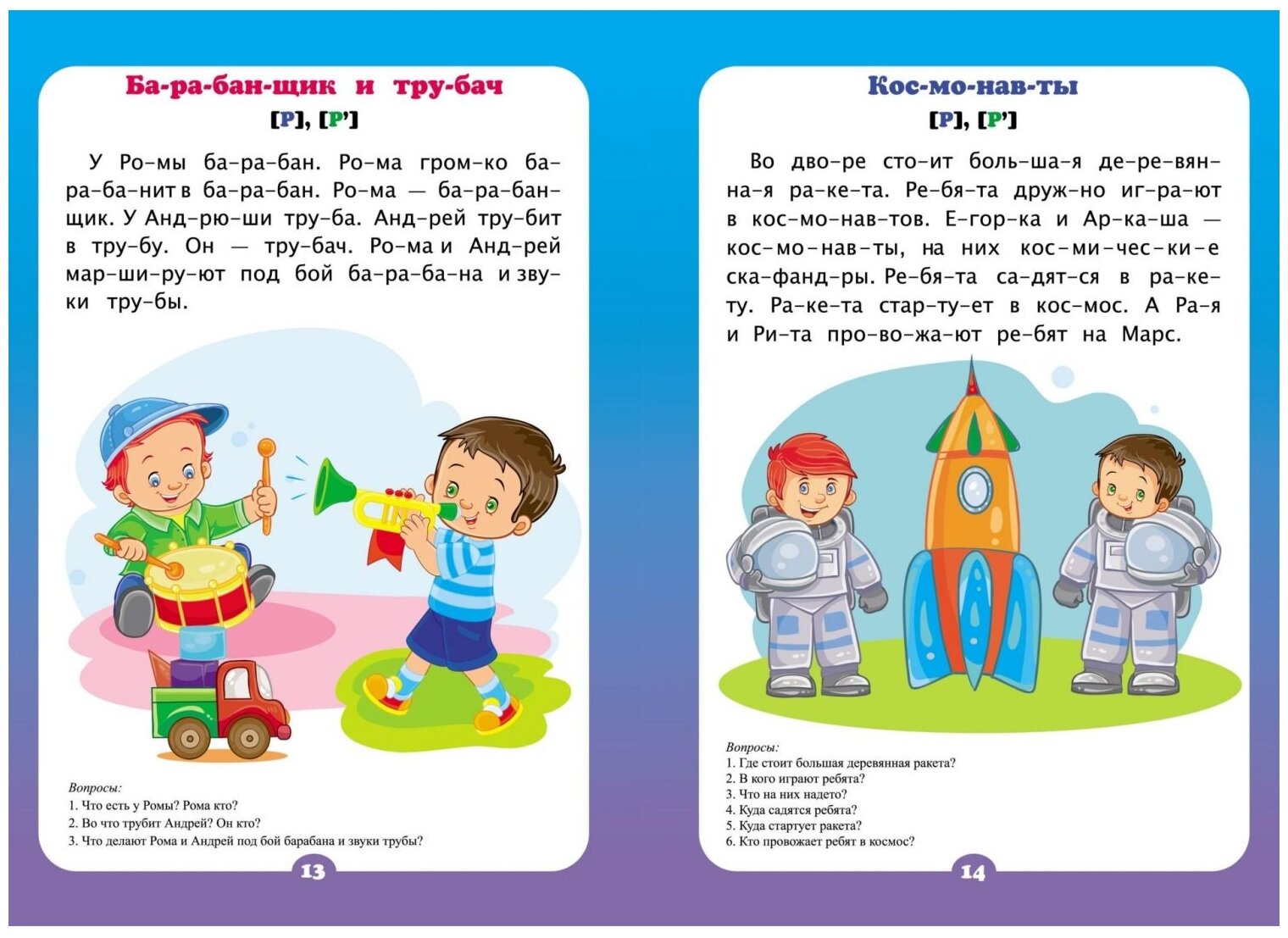 Хотите видеть своего ребенка успешным, грамотным, прилежным - занимайтесь по этой развивающей книжке. Не секрет, для малыша учиться читать и важно, и увлекательно! Будущему школьнику будет легче и интереснее освоить слоговое чтение предложений и текстов с крупным шрифтом и красочными иллюстрациями. Ваши совместные занятия чтением помогут расширить кругозор и словарный запас малыша, он сможет быстро прочесть первые слова и предложения самостоятельно. Кроме того, каждый текст способствует развитию мышления и речи ребенка. Отвечая на вопросы к тексту, он правильно воспроизведет содержание, последовательно перескажет, запомнит детали, потренируется в автоматизации и дифференциации звуков [c], [с’], [р], [р’], [з], [з’], [ш], [ж], [щ’], [ч’], [ц], [л], [л’], [м] [м’], овладеет четким и ясным звукопроизношением.