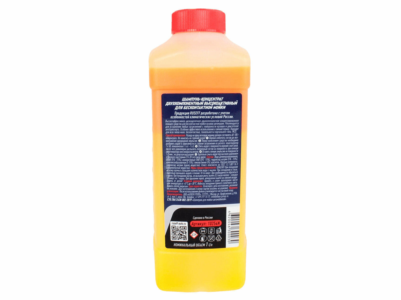 Шампунь-концентрат двухкомпонентный высокоактивный для бесконтактной мойки RUSEFF - Инновационное низко щелочное концентрированное моющее средство, предназначенное для бесконтактной мойки кузовов автомашин. Этот отечественный продукт по мощности своего воздействия, пожалуй, превосходит многие импортные аналоги. Прекрасно работает в холодной и жесткой воде. Рекомендован к использованию во всех климатических регионах нашей страны для устранения любых, в том числе сильных, загрязнений с поверхности кузовов и двигателей автотранспорта. Шампунь может быть особенно полезен в зимний период, т.к. прекрасно отмывает следы реагентов. Подходит для всех типов моек: бесконтактных, тоннельного и портального типа, МСО.
