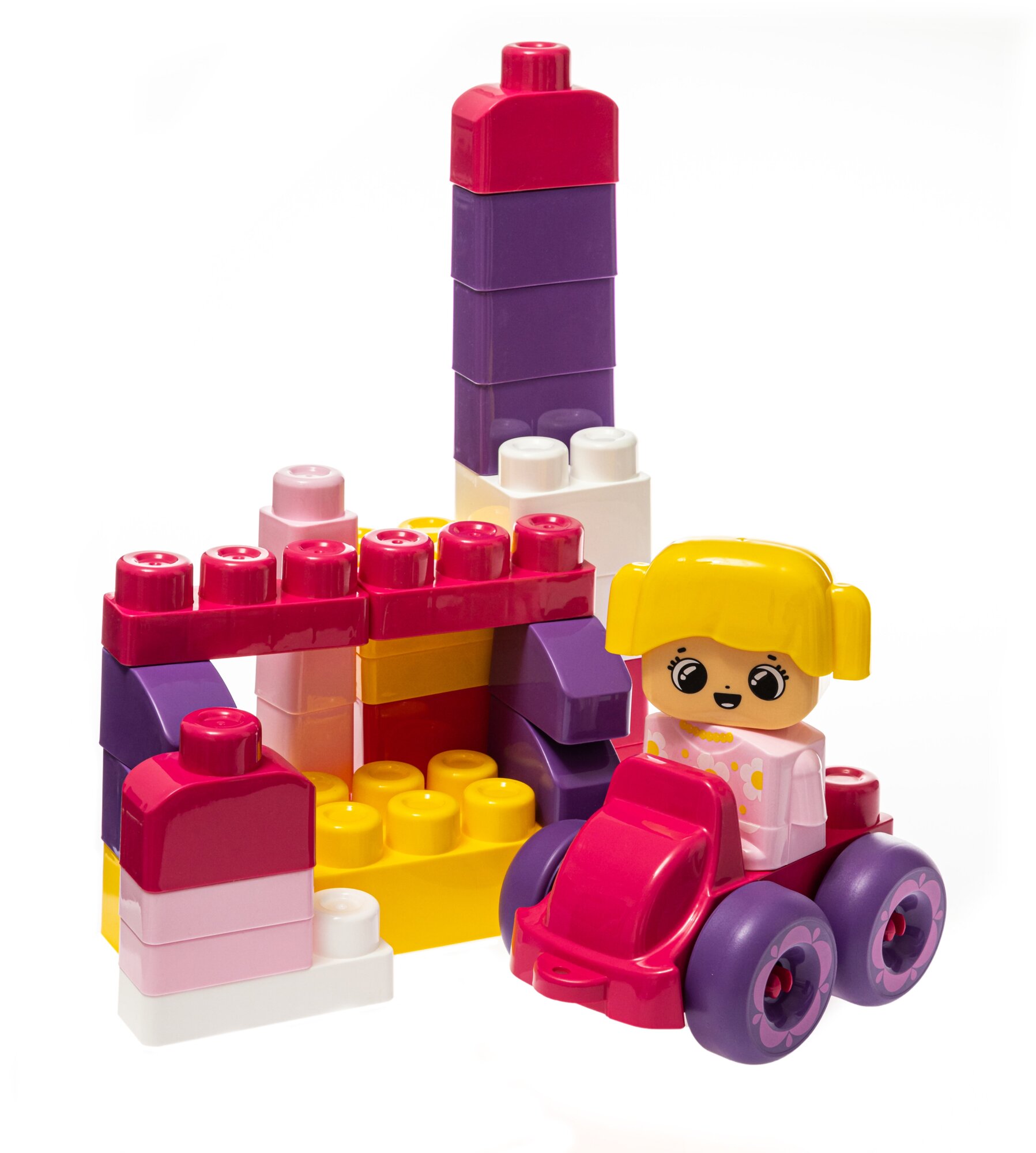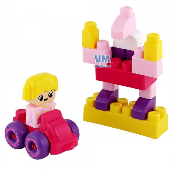 Пластиковый конструктор для девочек «Замок принцессы» состоит из пластиковых кубиков размером от 31 х 31 х 52 мм до 167 х 70 х 103 мм розового, желтого и фиолетового цвета. Блоки кирпичики для строительства замка, элементы туловища принцессы, детали для автомобиля с колесами. Кубики большого размера, гладкие, без заусенцев. Легко украшаются наклейками. Развивают мелкую моторику, логику, творческие способности. Универсальные крепления деталей конструктора позволяет использовать другие наборы этой серии.