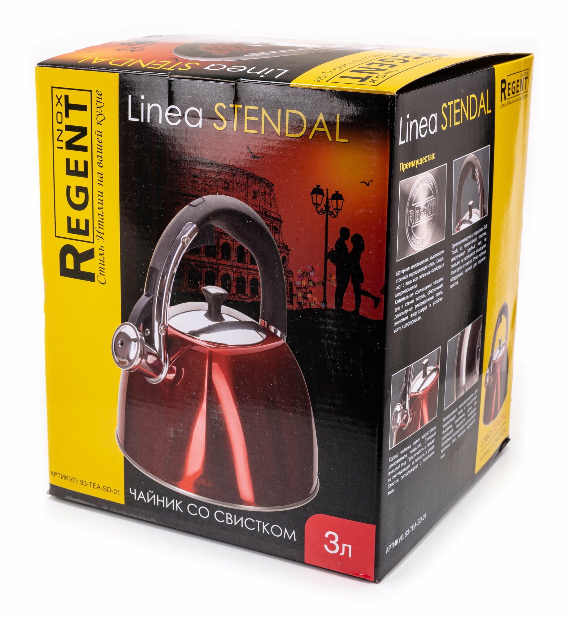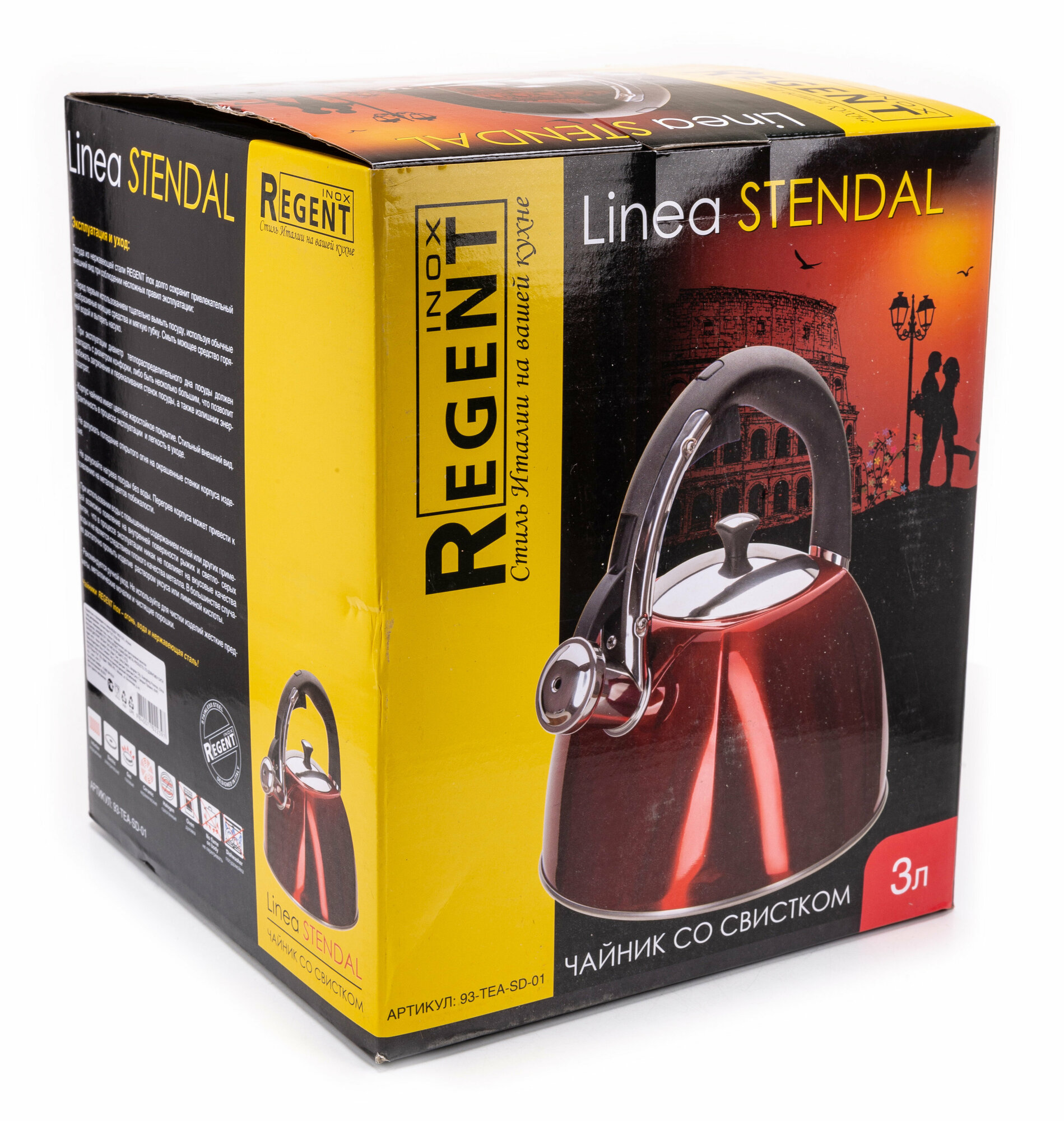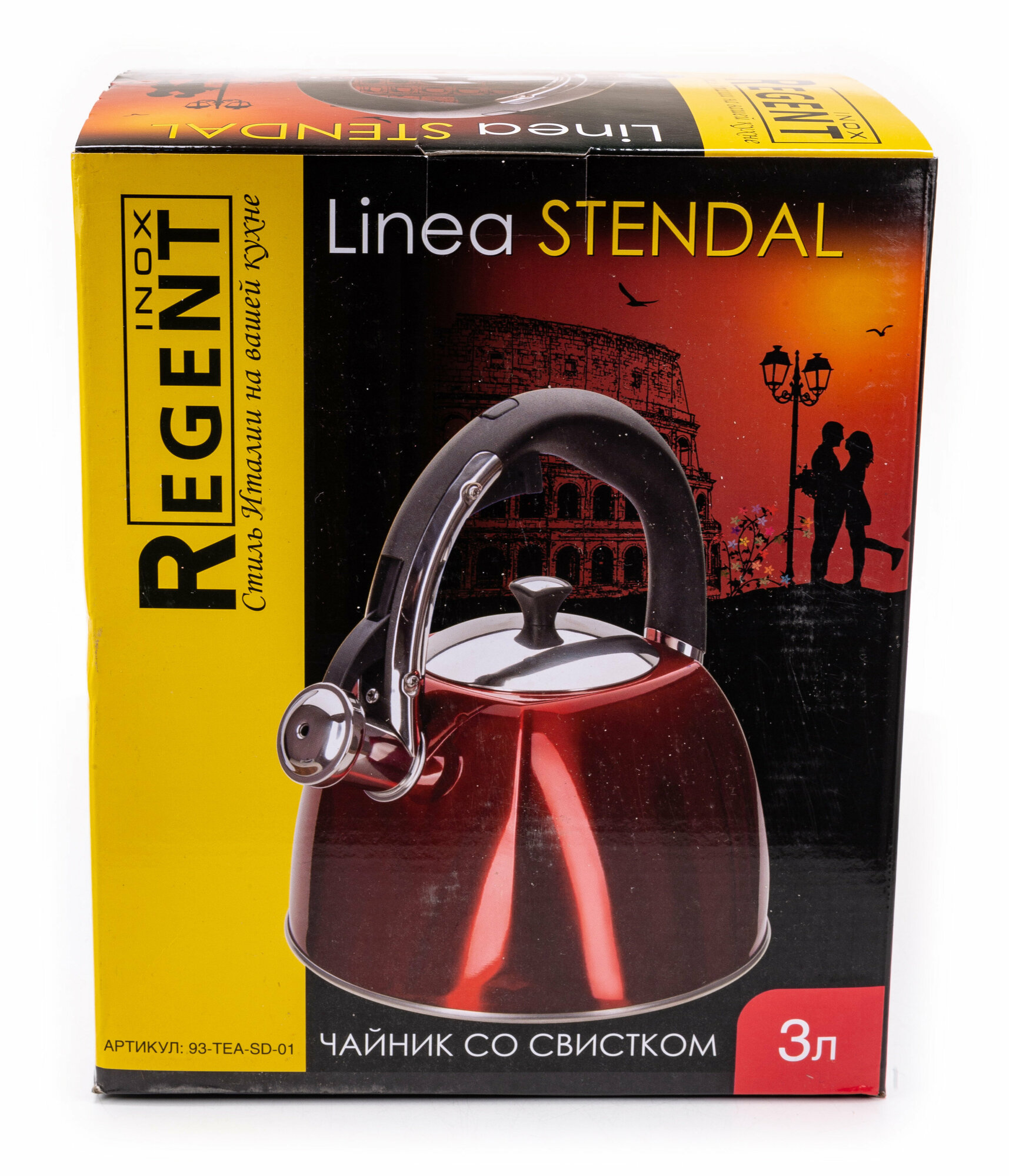 Чайник со свистком Regent Inox Stendal красный металлик 3л Linea STENDAL
