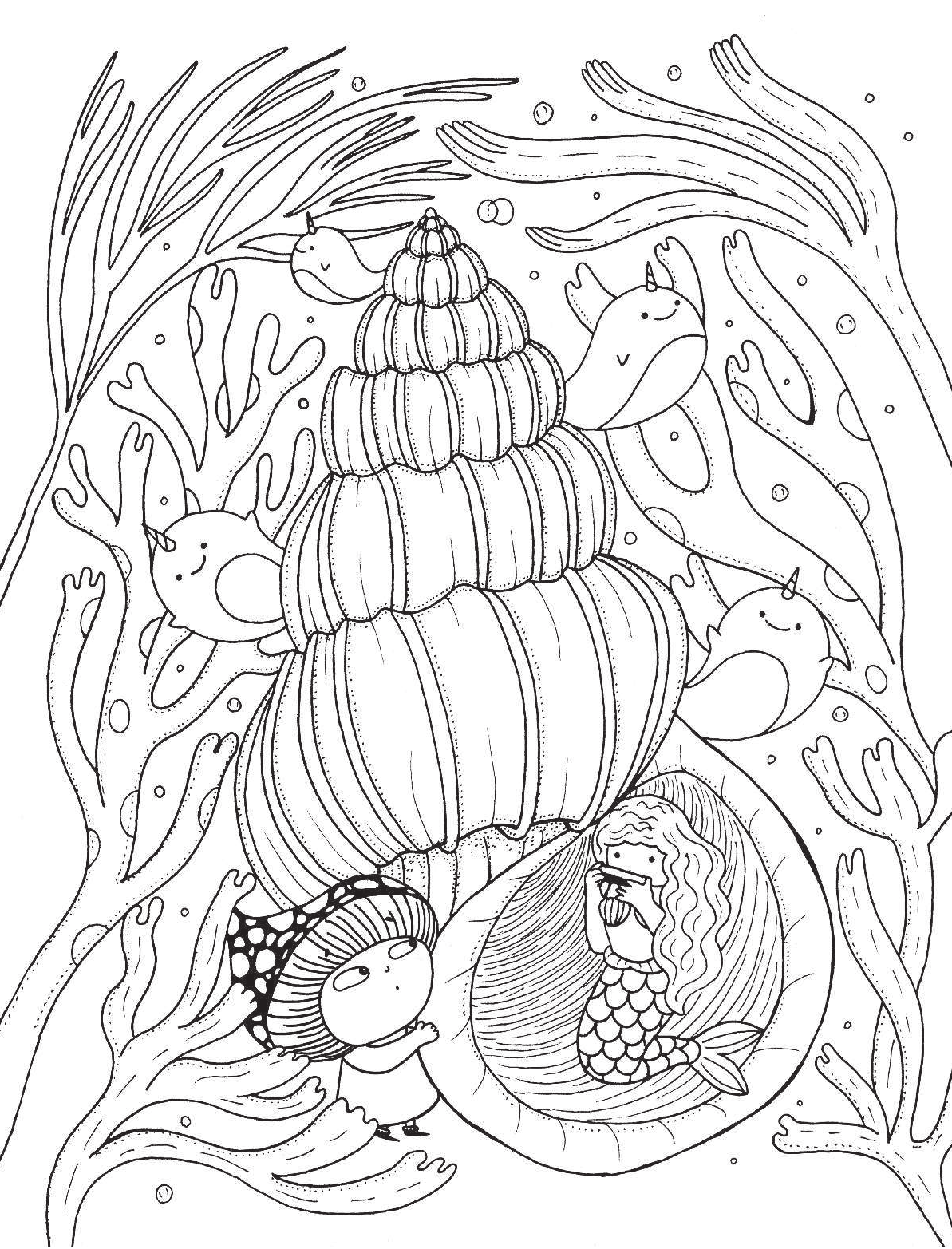 Мне очень понравилась данная раскраска. Когда первый раз взяла её в руки и пролестала несколько страниц, у меня была ощущение, что я попала в царство этих прекрасных русалочек, котиков, единорогов и других морских обитетелей. Я не могла оторваться от раскраски, пока все не пролестала до конца!