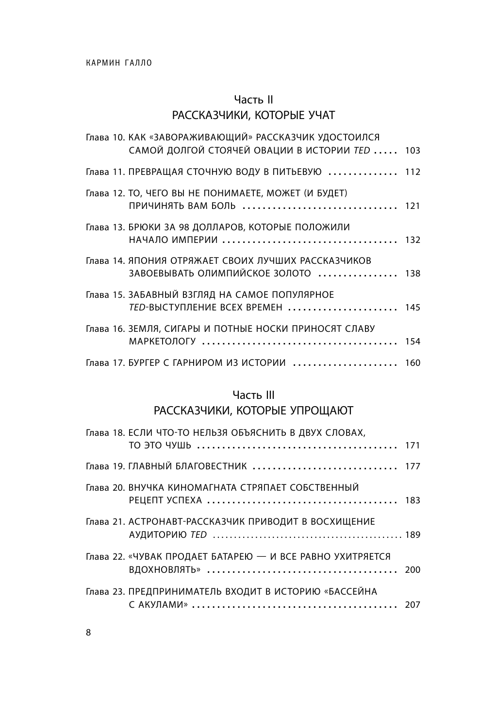Умение рассказывать истории — настоящая суперсила. Она способна решить исход крупной сделки, спасти сложную презентацию на совете директоров или убедить миллионы людей пожертвовать деньги на благотворительность. Все чаще лидеры топовых компаний выступают в формате сторителлинга, ведь это самый действенный способ донести свои идеи до аудитории. Кармин Галло, автор бестселлеров по коммуникациям, провел десятки интервью с самыми известными ораторами и проанализировал более 500 выступлений TED, чтобы раскрыть для нас тайные механизмы сторителлинга.