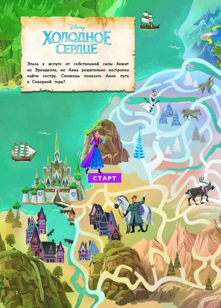 Волшебный мир любимых с детства фильмов теперь перед тобой как на ладони - на роскошных красочных картах, глядя на которые так просто понять, почему Анна так долго искала свою исчезнувшую сестру, и что пришлось преодолеть Симбе, чтобы вернуться на Скалу прайда. На карты можно наклеивать наклейки, в книге есть карты, которые можно раскрашивать, а также интересные задания и огромные увлекательные лабиринты - попробуй добраться до цели!