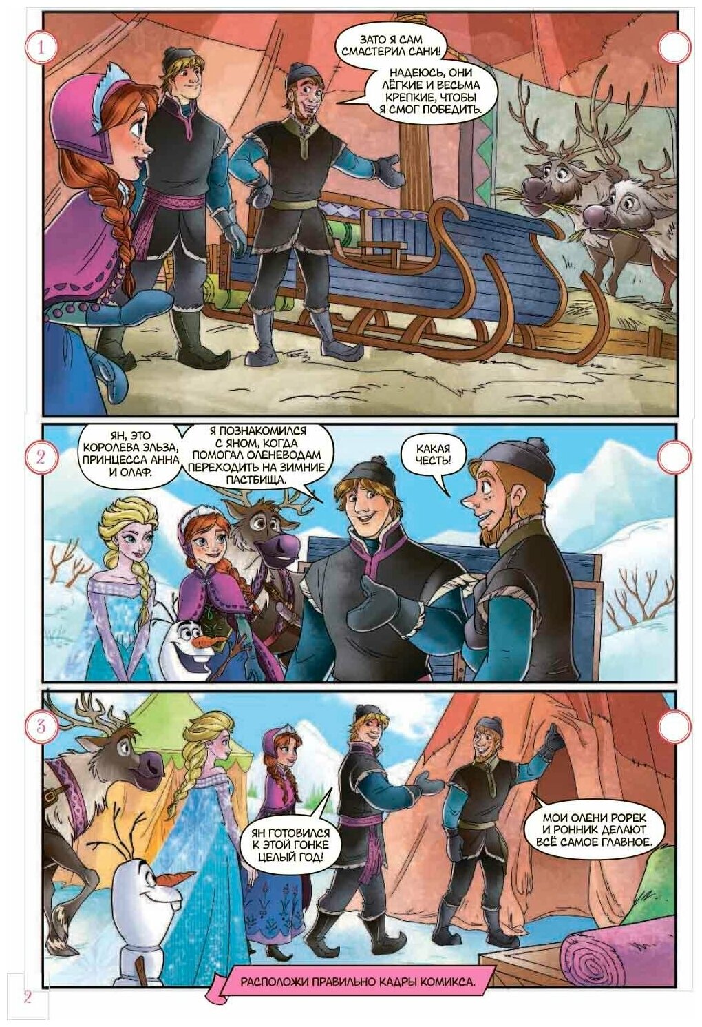На чемпионате по оленьим гонкам выступит Ян, друг Кристоффа. Но незадолго до начала соревнования из дома приходят плохие новости, и ему срочно нужно ехать домой. Анна, Кристофф и Свен решают выступить вместо Яна. Кто же финиширует первым?