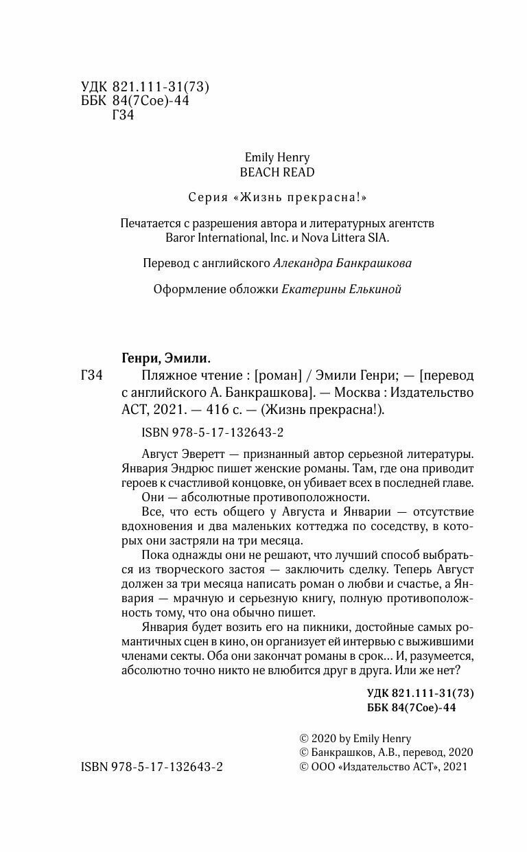 Книга: Пляжное чтение (Эмили Генри); Издательство АСТ, 2020