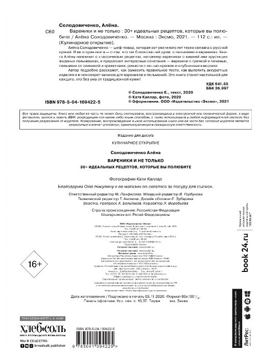 Вареники и не только. 30+ идеальных рецептов которые вы полюбите (Солодовиченко А.); ООО "Издательство "Эксмо", 2021