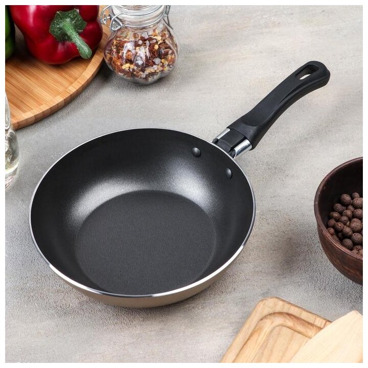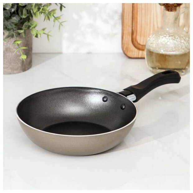 Сковорода для повседневного использования из новой линейки Sandy – это комфортное и быстрое приготовление любимых блюд, благородный золотистый цвет и уютное настроение на вашей кухне.Практичный диаметр 16 см, крепкая и удобная бакелитовая ручка, европейское антипригарное покрытие с высокой износостойкостью и превосходными защитными свойствами – такие характеристики позволяют готовить на сковороде Sandy интенсивно, разнообразно и с удовольствием. Корпус сковороды из чистого пищевого алюминия прочен, устойчив к воздействию высоких температур и абсолютно безопасен. Использование минимального количества масла при жарке, легкое мытье и стильный дизайн понравятся любой хозяйке.