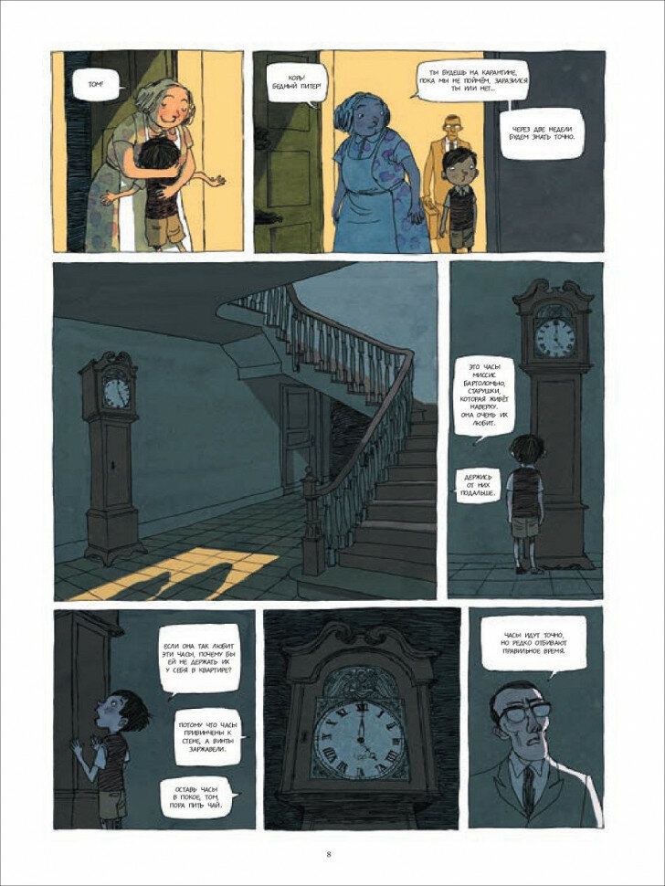 Графическая адаптация классики английской детской литературы, романа Филиппы Пирс «Том и полночный сад»(1958), выполненная французской художницей Эдит (Эдит Граттери). Его главные герои—мальчик Том и Время.