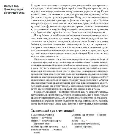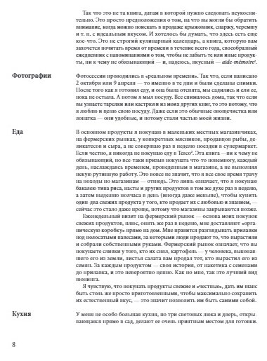 Правильная еда, правильное место, правильное время. Найджел Слейтер верит в то, что это — самый лучший рецепт. Пряная скумбрия с копченой паприкой первым январским вечером; салат с редисом, мятой и фетой в июньский полдень; острые колбаски с долькой печеной тыквы в пробирающий до костей холодный ноябрьский вечер... Блюда, успех которых зависит не от опытности повара, а от сезонной свежести, когда ингредиенты находятся на пике своих вкуса и пользы, когда еда, кулинар и сезон — в гармонии друг с другом. Этот кулинарный дневник скорее похож на альбом любимых фотографий, в который можно заглянуть в любой день года и подобрать блюдо, подходящее для настоящего момента.