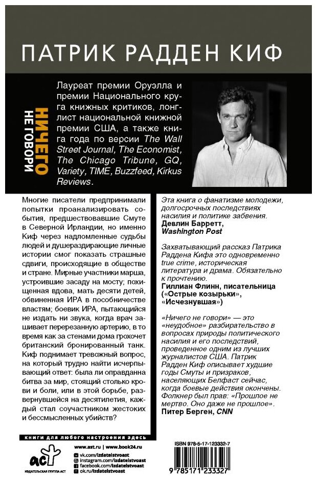 Сервис сравнения цен СкидкаГИД предлагает сравнить цены на товар «Книга: Ничего не говори. Северная Ирландия. Смута закулисье «голоса из могил» (Радден Киф Патрик); ИЗДАТЕЛЬСТВО "АСТ", 2020»