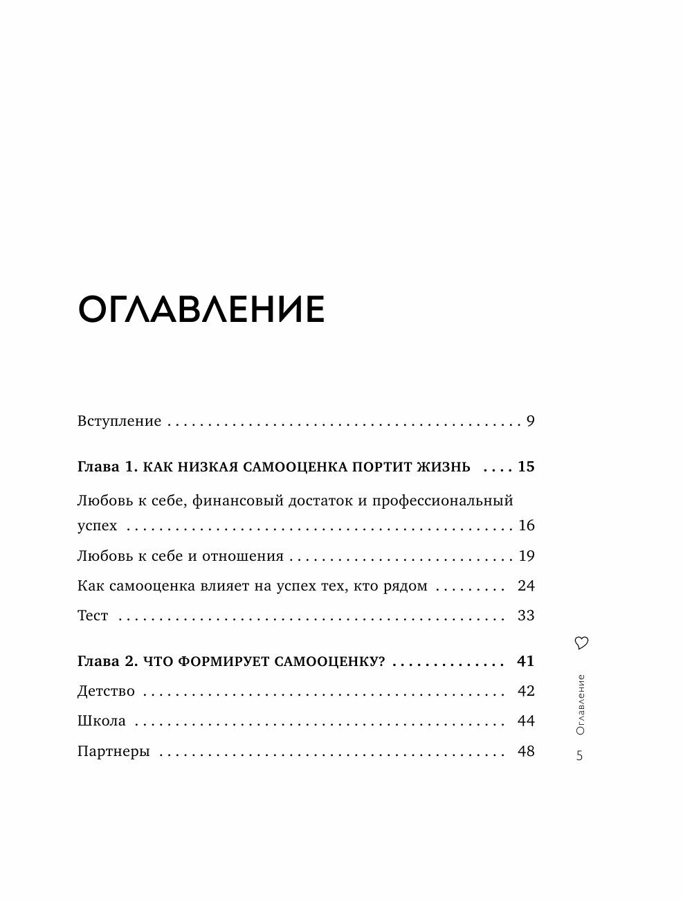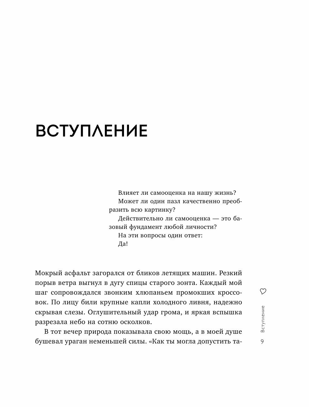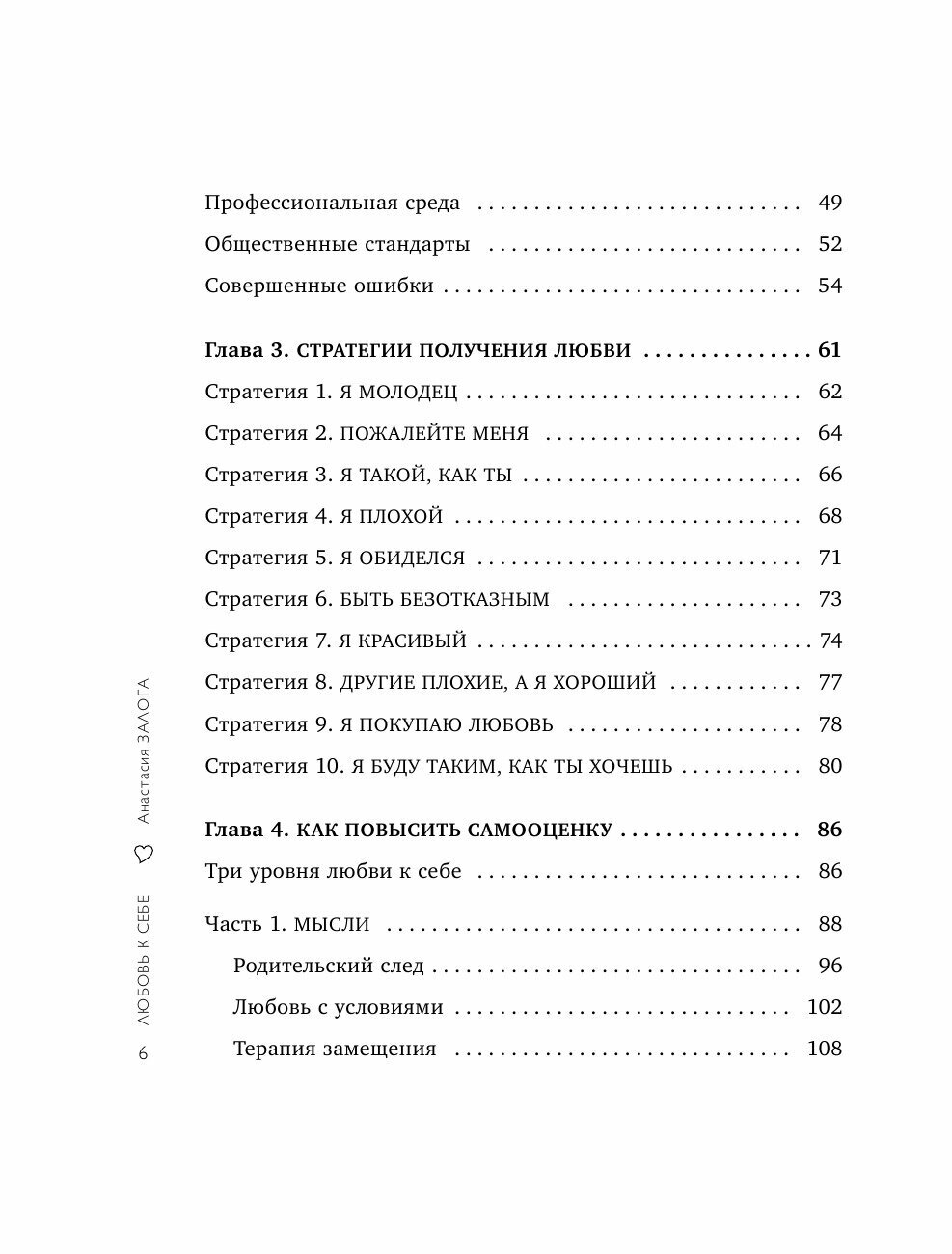Эта книга помогает повысить самооценку, даже если вы уже отчаялись) Автор говорит обо всем, что ее касается: почему низкая самооценка - это плохо, как она складывается, как ее повысить с помощью мыслей, чувств и действий, как принять свое тело, как отстаивать личные границы и др. Также Анастасия Залога подробно разбирает, какие стратегии есть у людей с низкой самооценкой и как они им мешают, а главное - рассказывает, как выйти из них. В книге множество примеров, историй людей, которые автор подробно комментирует. Есть упражнения разных форматов, причем автор всегда обосновывает, почему важно выполнять то или иное упражнение. Главное, что я поняла, что любить себя - это не просто какая-то абстрактная модная задача, а существуют вполне конкретные шаги, чтобы это делать. В общем, советую книгу всем, кто испытывает жизненные трудности, скорей всего их причина именно в недостаточно высокой самооценке)