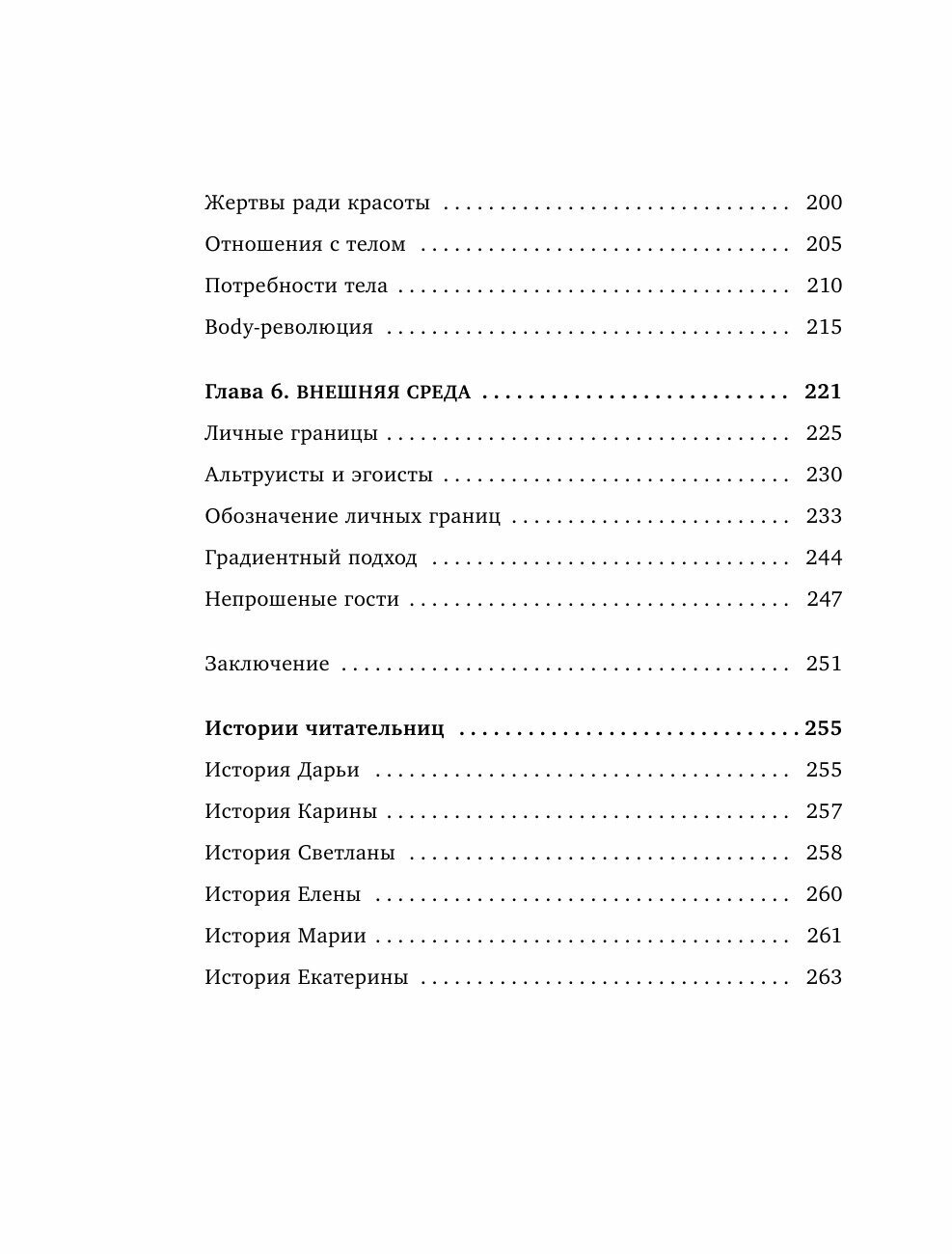 Книгу очень легко читать, все разложено по полочкам. Но первое, что я сделала после прочтения книги — подошла к зеркалу и призналась себе в любви! Это было так странно и необычно, но мне понравилось! Рекомендую каждому! -